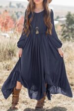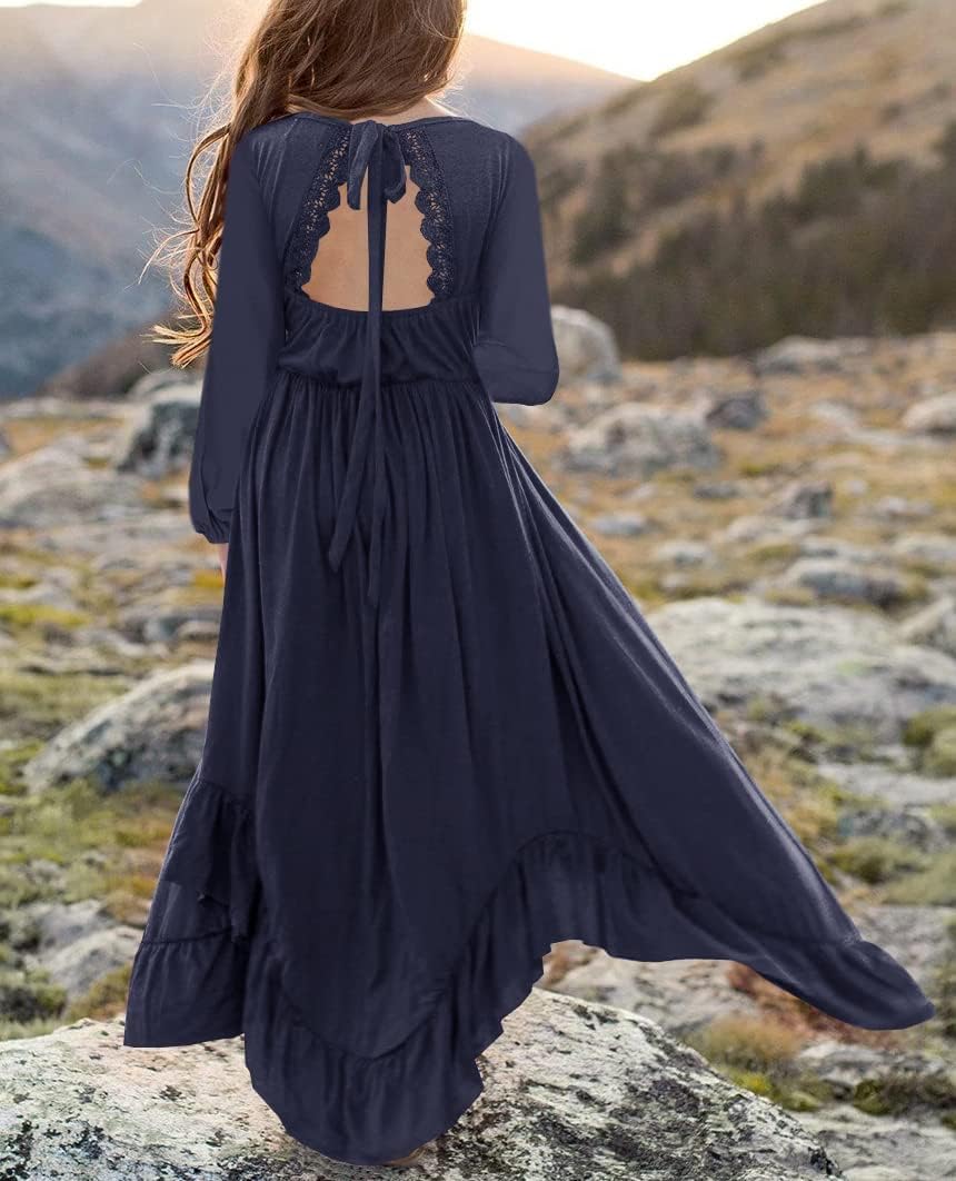 Be the first to review “MITILLY Girls Boho Lace Flower Backless Crew Neck Long Sleeve Ruffle Swing Maxi Dress with Pockets” Cancel reply