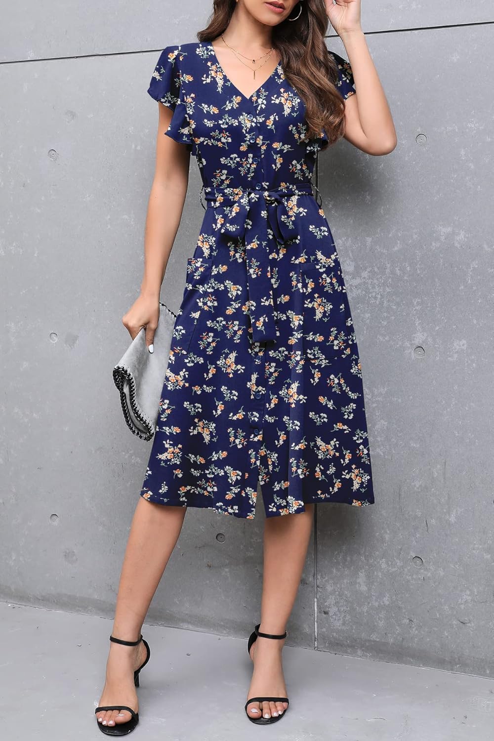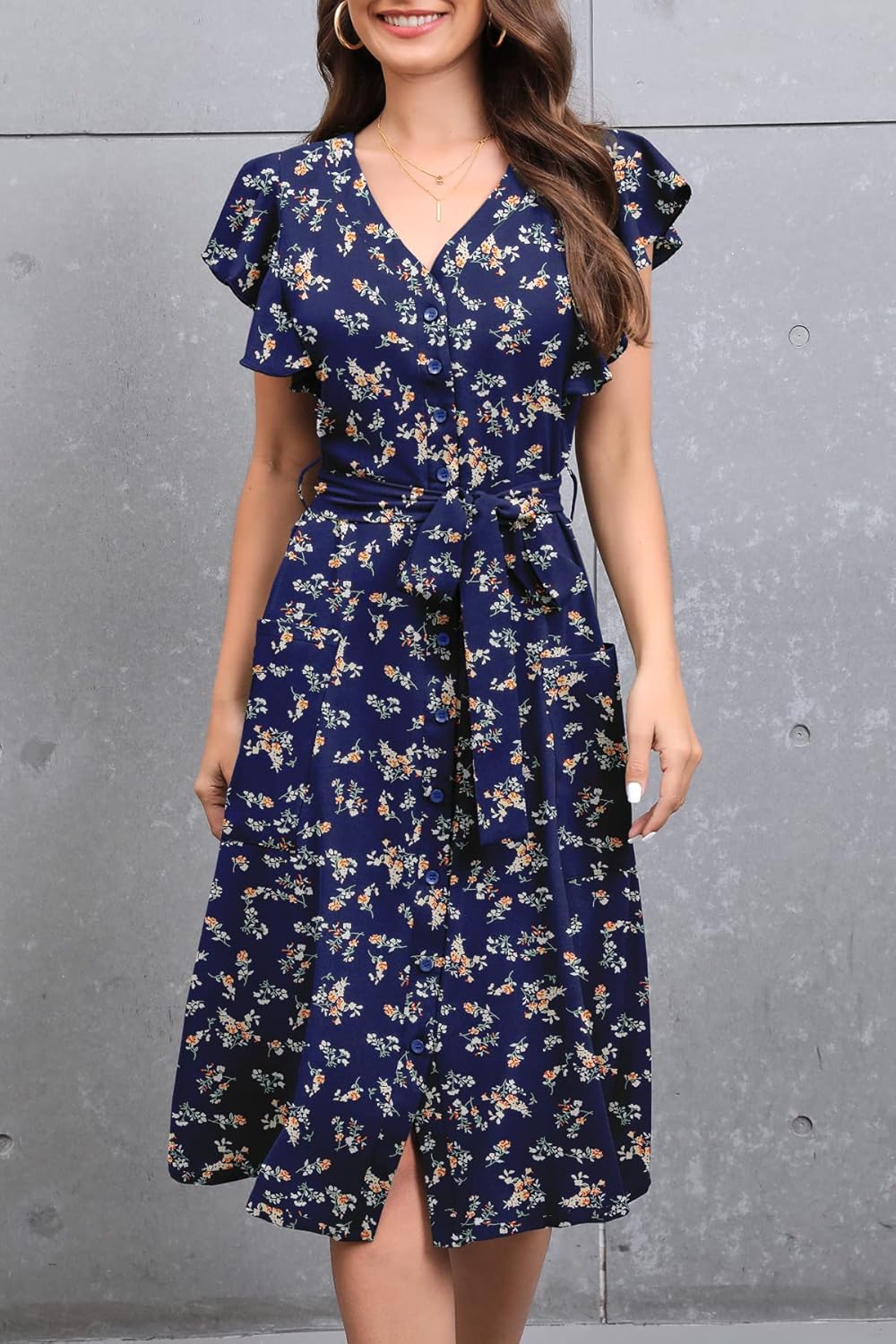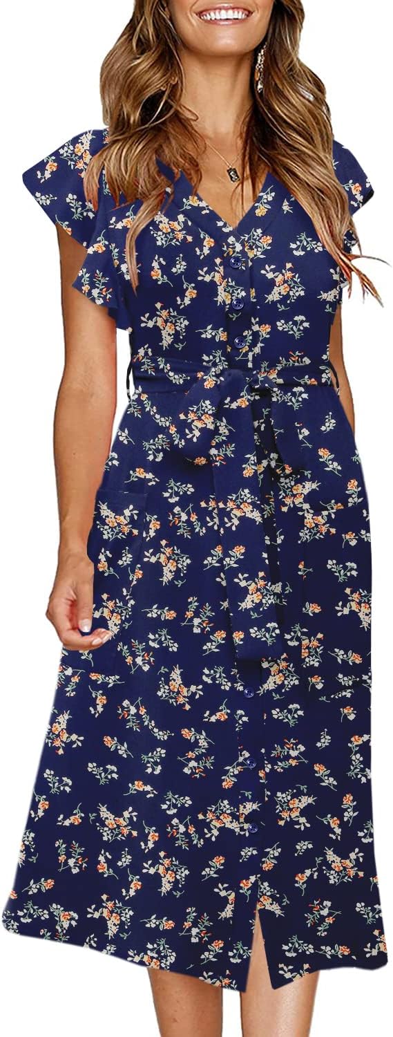 Made of high quality comfy fabric, flutter sleeves, button down front and a adjustable tie waist. The styling options with this dress are endless! You will want one in every color!