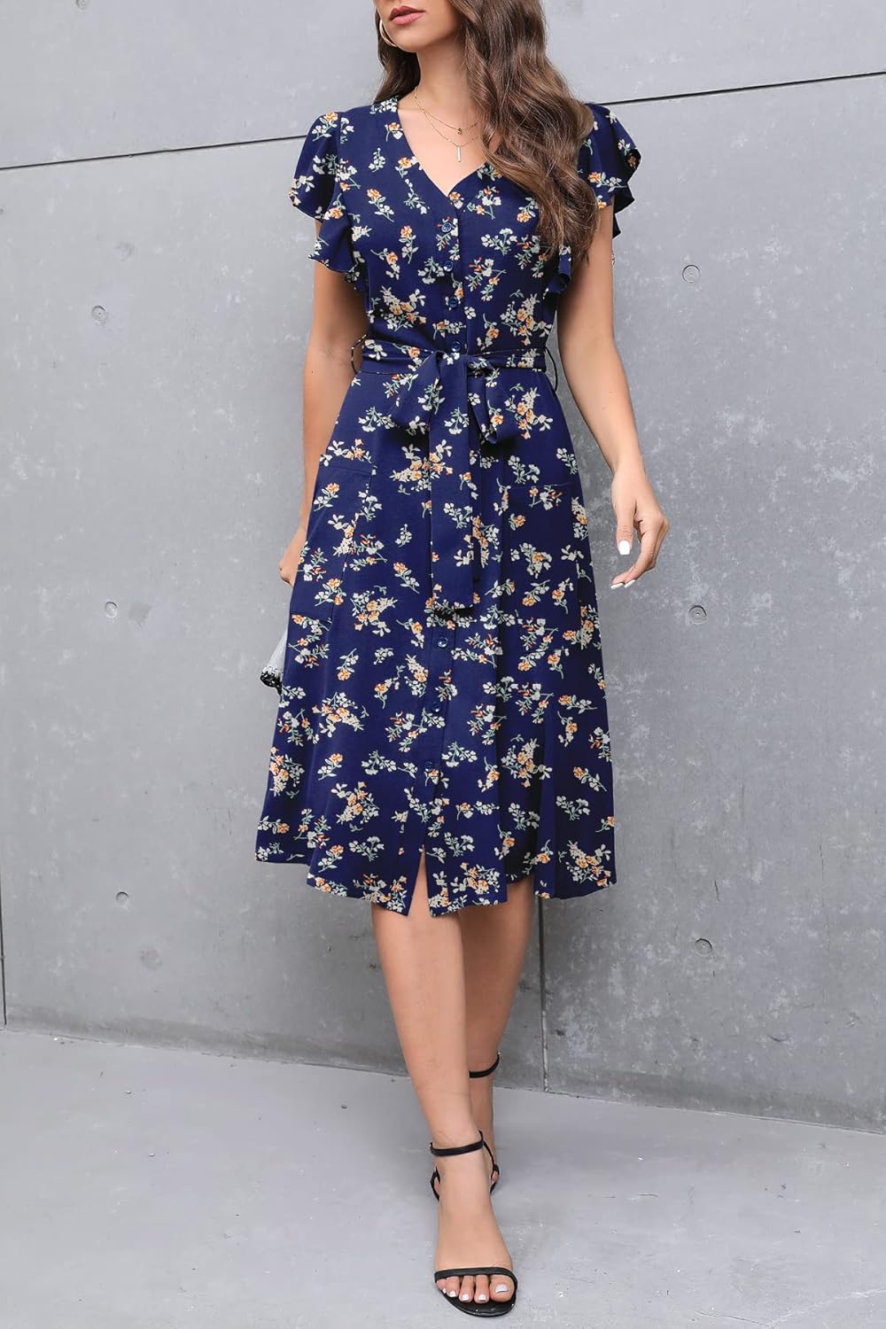 Be the first to review “MITILLY Women’s Summer Boho Polka Dot Sleeveless V Neck Swing Midi Dress with Pockets” Cancel reply