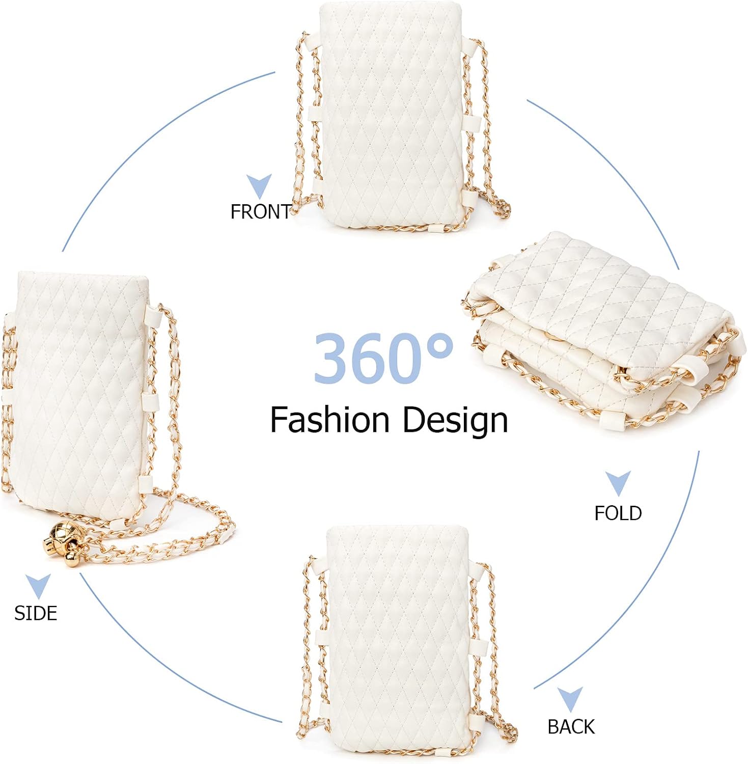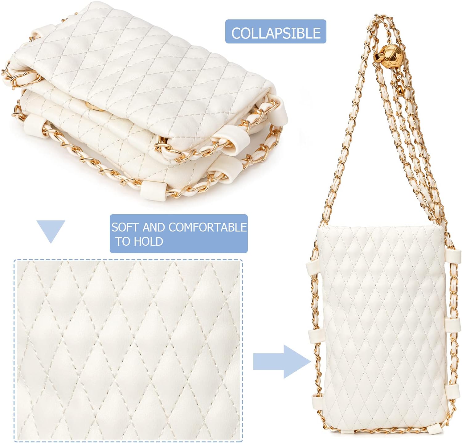 myfriday Mini Quilted Crossbody Purse for Women, Soft Small Summer Shoulder Purse and Handbag with Adjustable Chain Strap, A-white, Small