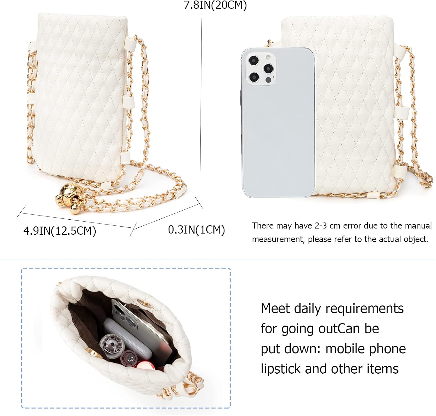 ★Dimension: 4.9″(12.5 cm)L x 0.3″(1 cm)W x 7.8″(20 cm), which can use as cell phone crossbody bag and cell phone shoulder bag.