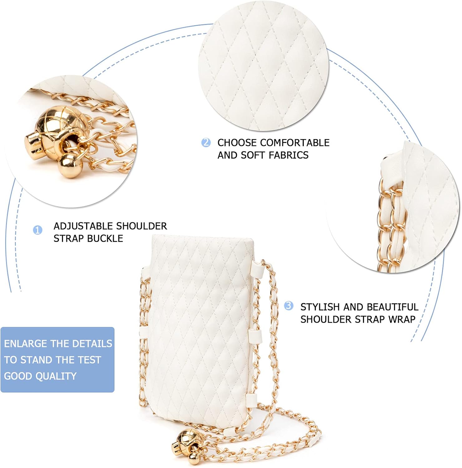 Home Bags & Accessories Handbags myfriday Mini Quilted Crossbody Purse for Women, Soft Small Summer Shoulder Purse and Handbag with Adjustable Chain Strap, A-white, Small
