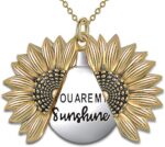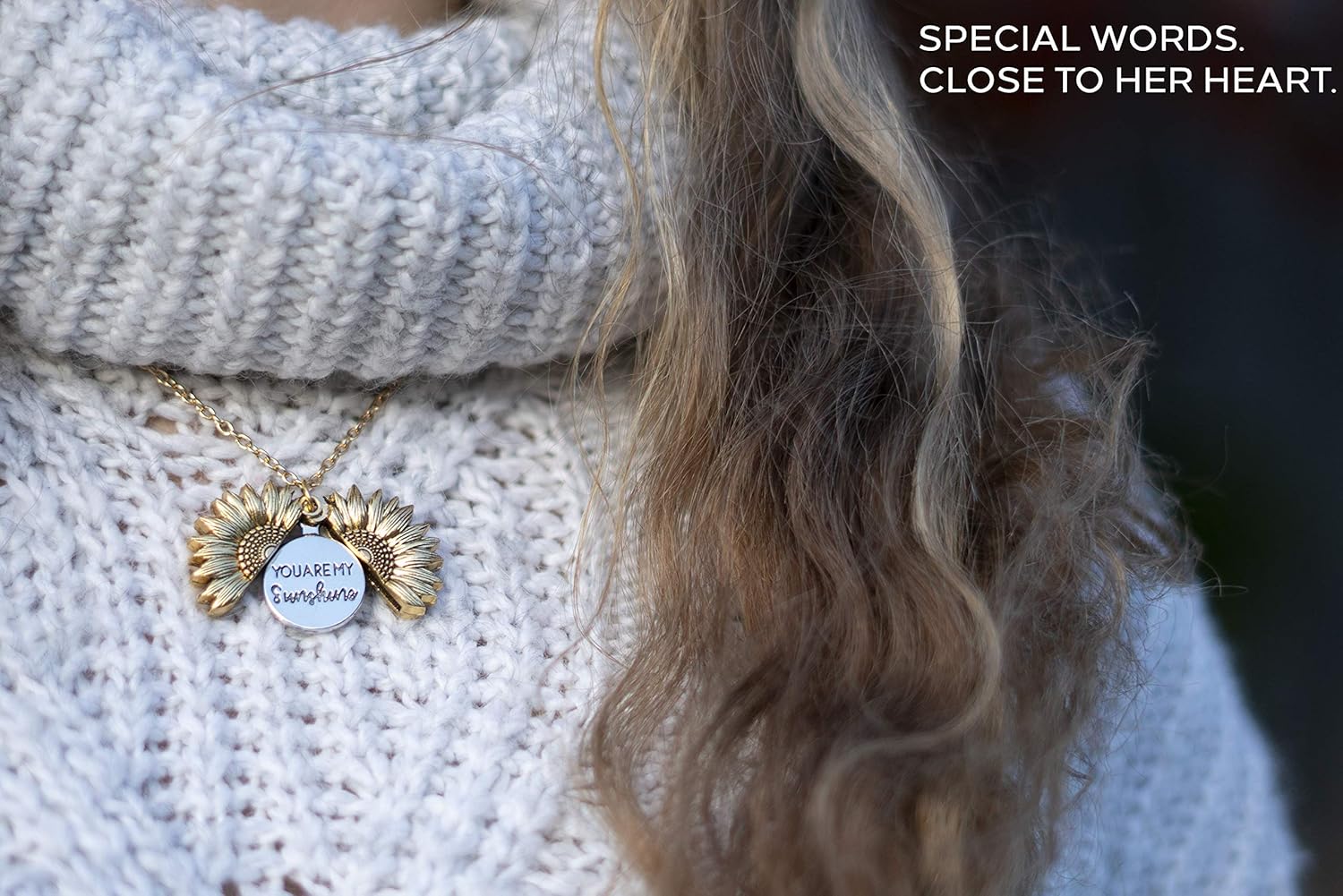 Home Jewelry & Fashion Accessories Necklaces & Pendants MyLittleSunflower – You are My Sunshine Necklace – Sunflower Necklace Locket with Engraved Hidden Message Pendant for Women, Mother, Daughter, Copper, No Gemstone