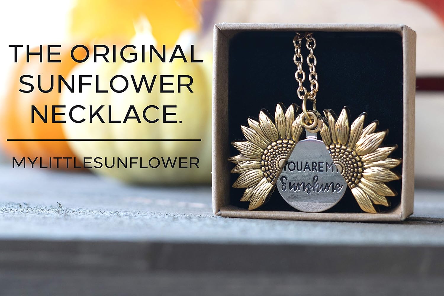 MyLittleSunflower – You are My Sunshine Necklace – Sunflower Necklace Locket with Engraved Hidden Message Pendant for Women, Mother, Daughter, Copper, No Gemstone