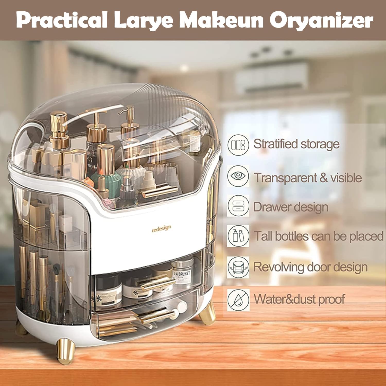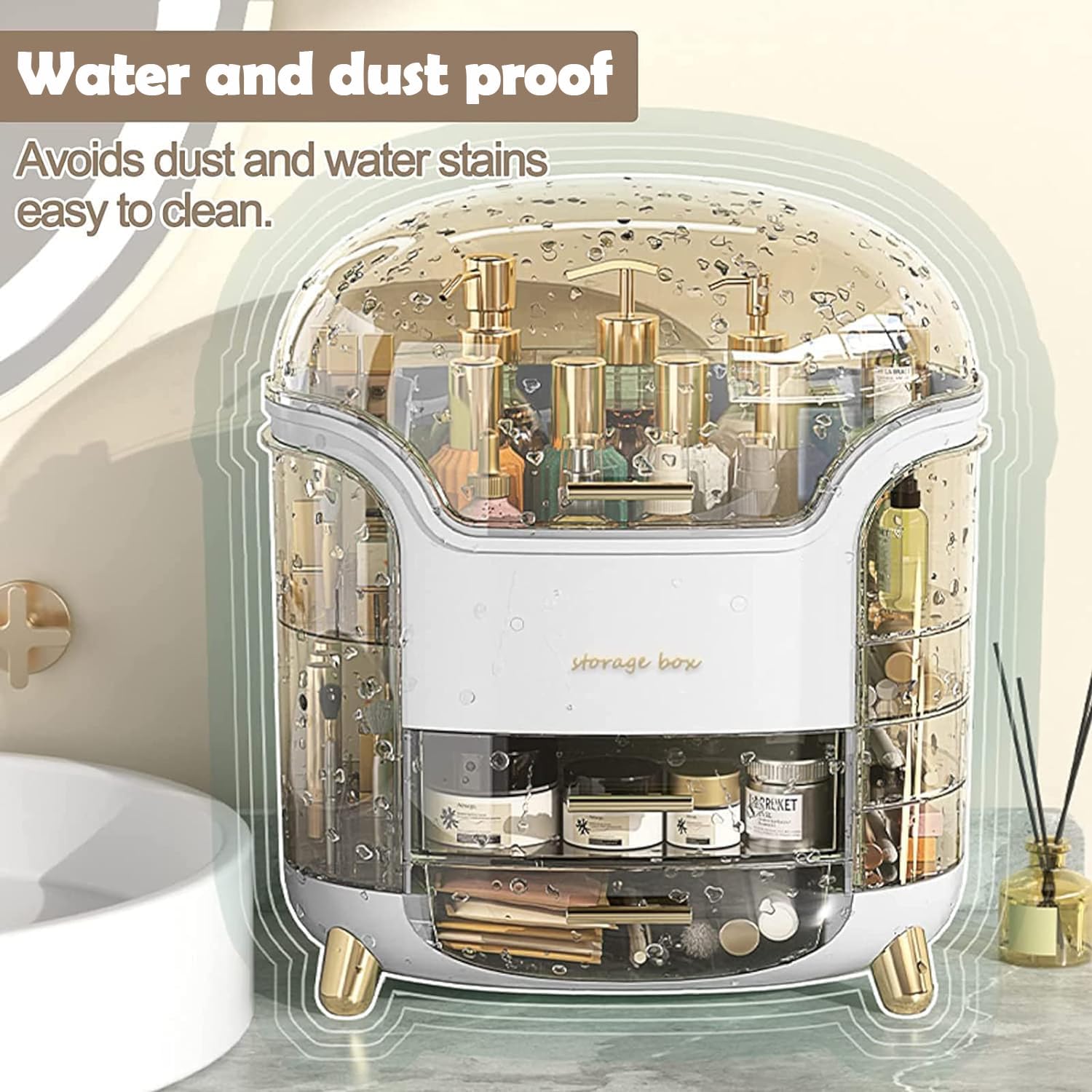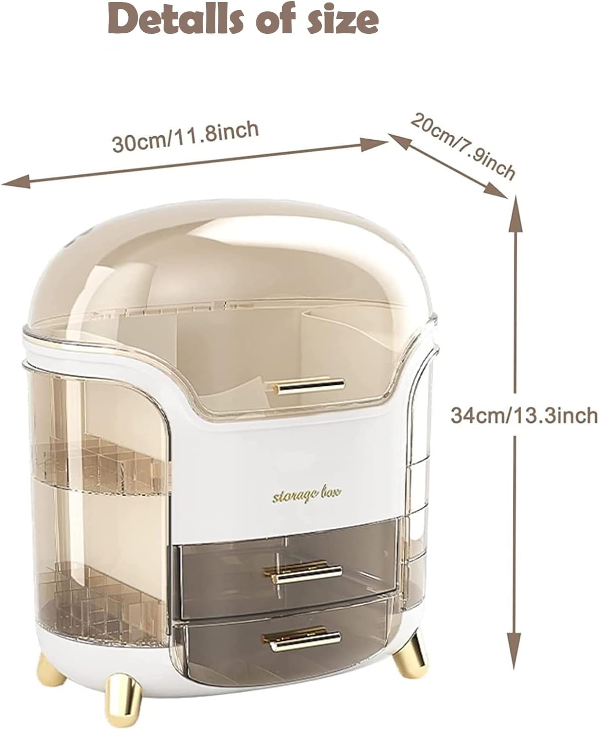 【Dust-Waterproof】 You can place it in the bathroom and bedroom, it will protect your cosmetics from dust and moisture. Decorated with a clear lid and drawers, the storage drawers are well divided to store lipsticks, makeup brushes, eyebrow pencils, foundation sticks, beauty gadgets, necklaces, rings.
