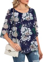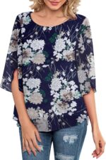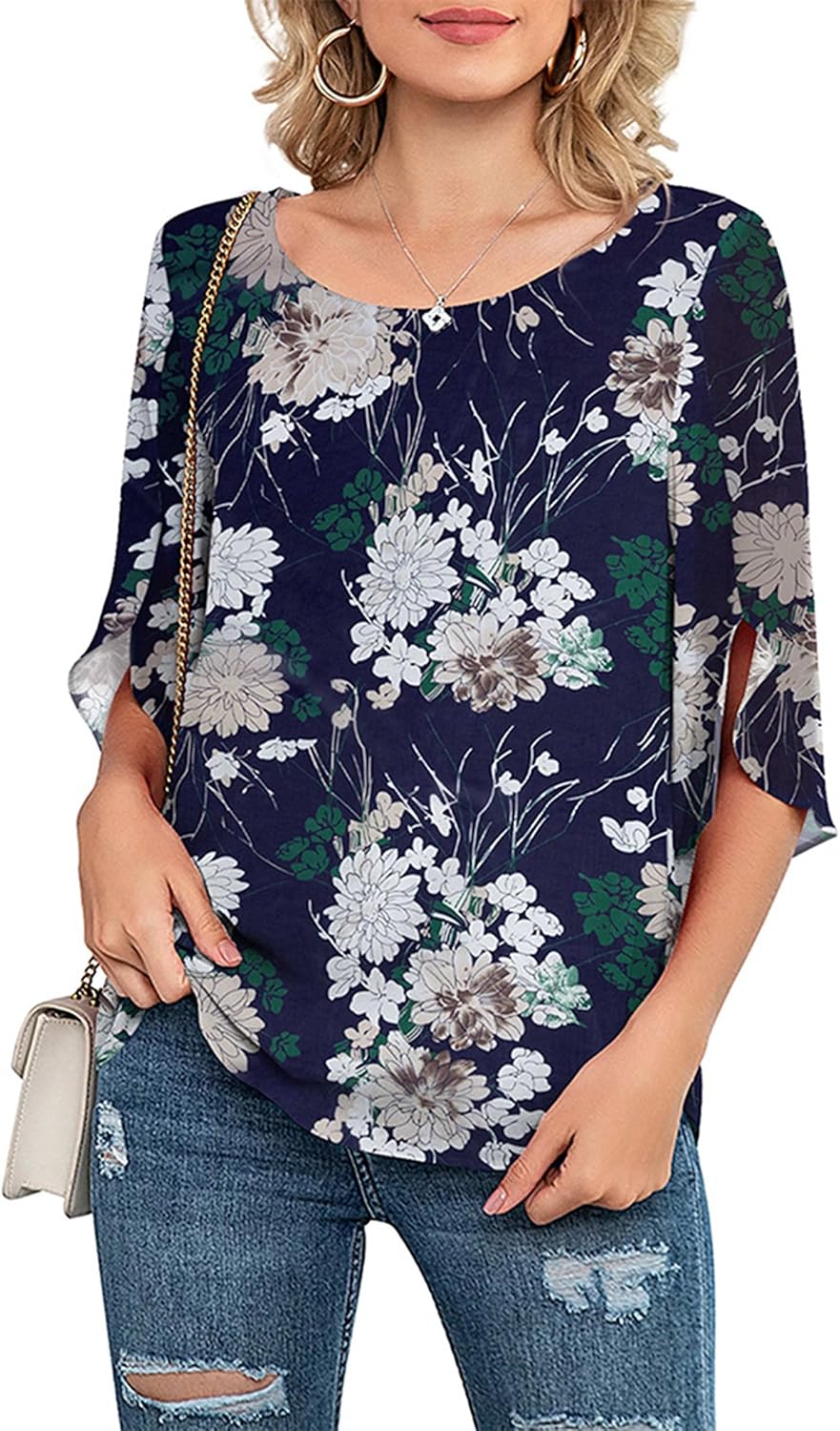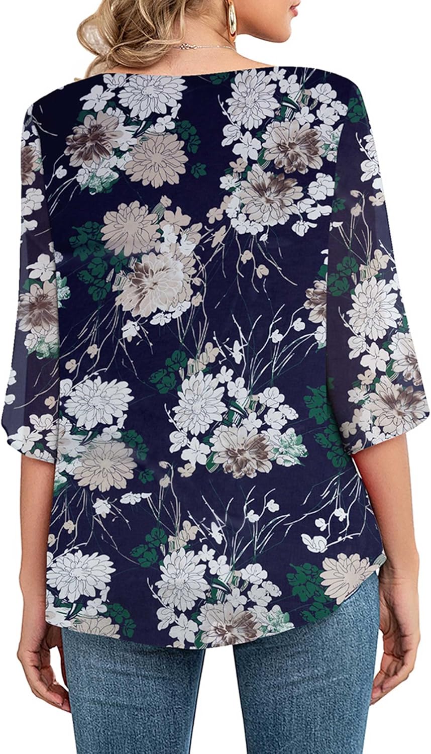 Neineiwu Womens Casual Scoop Neck Loose Top 3/4 Sleeve Chiffon Blouse Shirt Tops