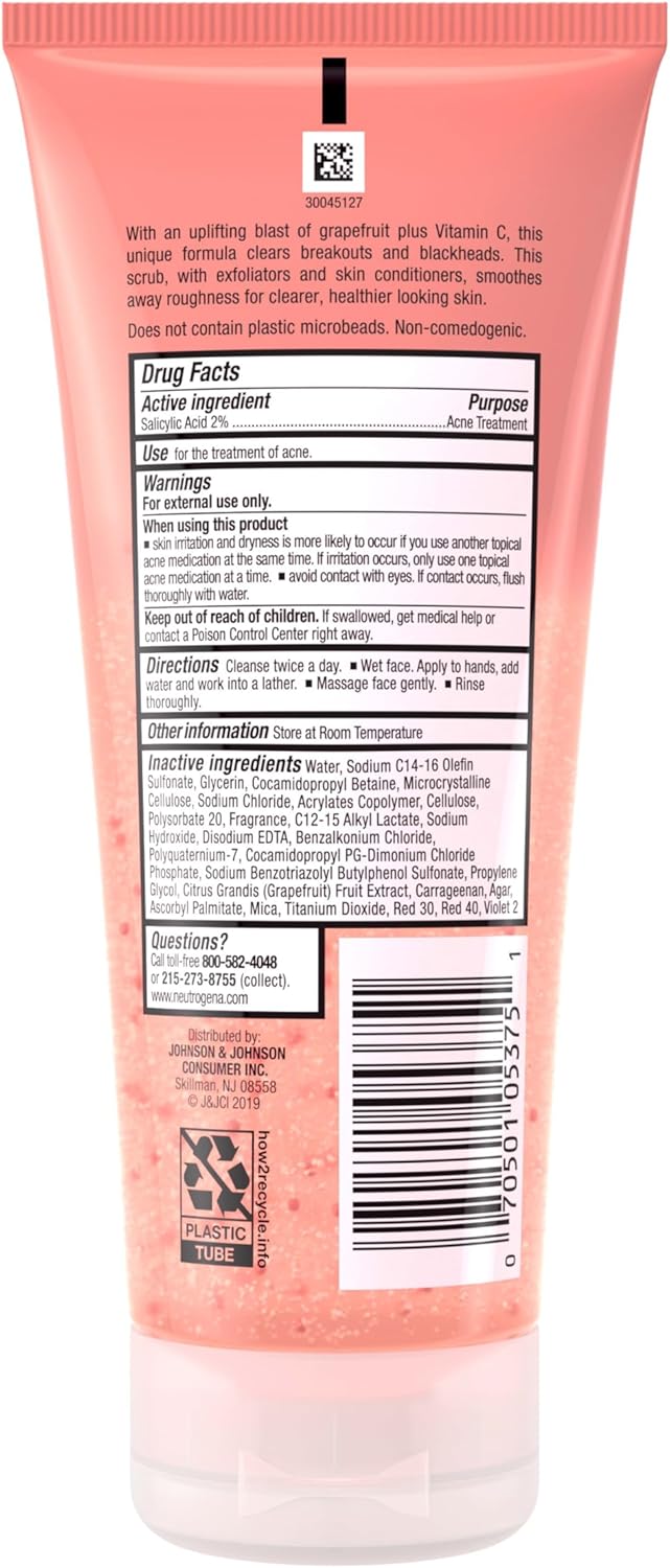 Help treat breakouts while gently exfoliating your skin with Neutrogena Oil-Free Acne Face Wash Pink Grapefruit Foaming Scrub. Designed for acne-prone skin, this foaming facial scrub clears breakouts and blackheads. With MicroClear technology and maximum strength Salicylic Acid, this formula works to cut through pore-clogging oil, allowing acne medication to penetrate to the source of breakouts, unclogging congested pores and removing dirt and impurities. The acne face wash is formulated with gentle exfoliators to help smooth away roughness for clearer, healthier-looking skin and it does not contain plastic microbeads. This daily face scrub is formulated with naturally derived grapefruit extract plus Vitamin C and make a great addition to a regular skincare routine.