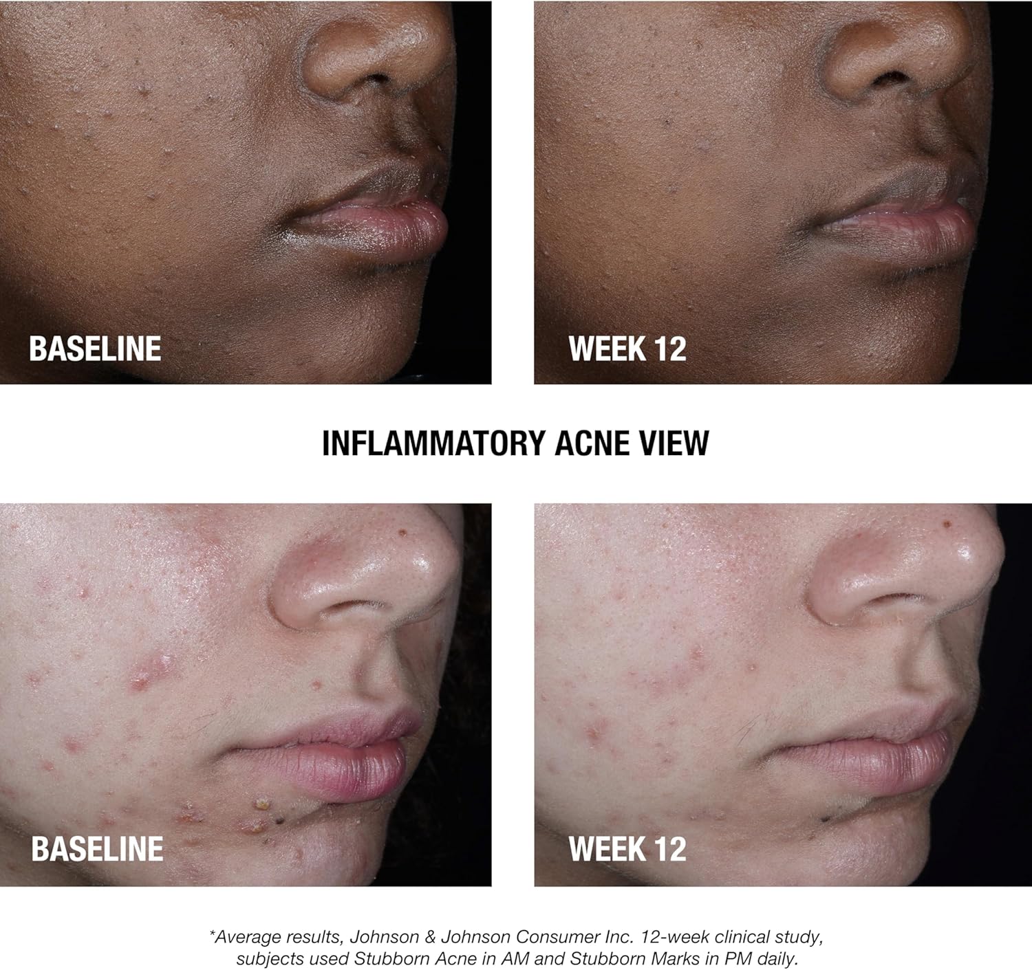 Help eliminate breakouts & reduce redness with Neutrogena Stubborn Acne AM Treatment. From a dermatologist-recommended acne brand, this daytime acne treatment is proven to reduce the size and redness of pimples in just 4 hours and visibly reduces breakouts and redness throughout the day. The clinically proven formula contains 2.5% micronized benzoyl peroxide acne medication, a dermatologist recommended OTC acne ingredient, to penetrate deep into pores and kill acne causing bacteria at the source. When used together with Neutrogena Stubborn Marks PM Treatment, 86% saw clearer skin after just four weeks. The daily treatment vanishes into skin, and the formula is oil-, paraben-, phthalate-, dye-, and fragrance-free. For best results, use Neutrogena Stubborn Acne AM Treatment along with Neutrogena Stubborn Marks PM Treatment as part of your skincare routine.