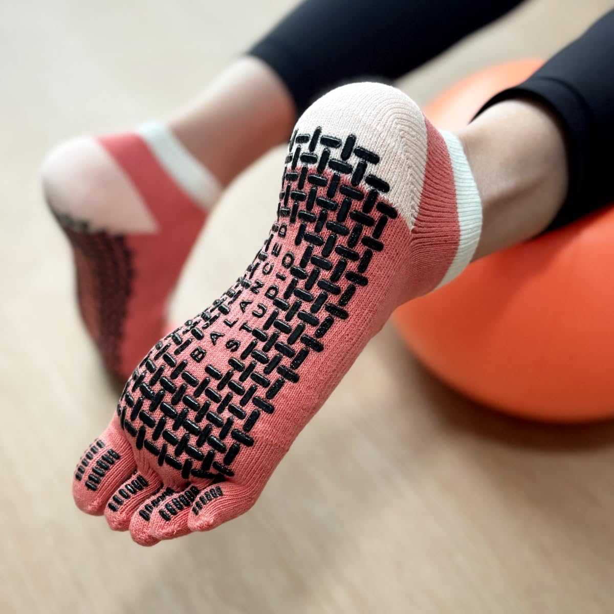 Women’s grip socks best for pilates, yoga and barre workouts. Designed to elevate your pilates experience with comfort, stability, and style. Crafted with premium materials, these socks feature specialized grips on the sole to enhance traction and stability during workouts, ensuring you maintain balance and control on any surface. The snug yet breathable fit provides optimal comfort, while the stylish design adds a touch of flair to your Pilates ensemble. Whether you’re a seasoned practitioner or just starting your Pilates journey, our grip socks are the perfect companion for achieving greater confidence and performance in every session. Say goodbye to slipping and sliding and hello to enhanced grip, stability, and comfort with our Pilates Grip Socks.