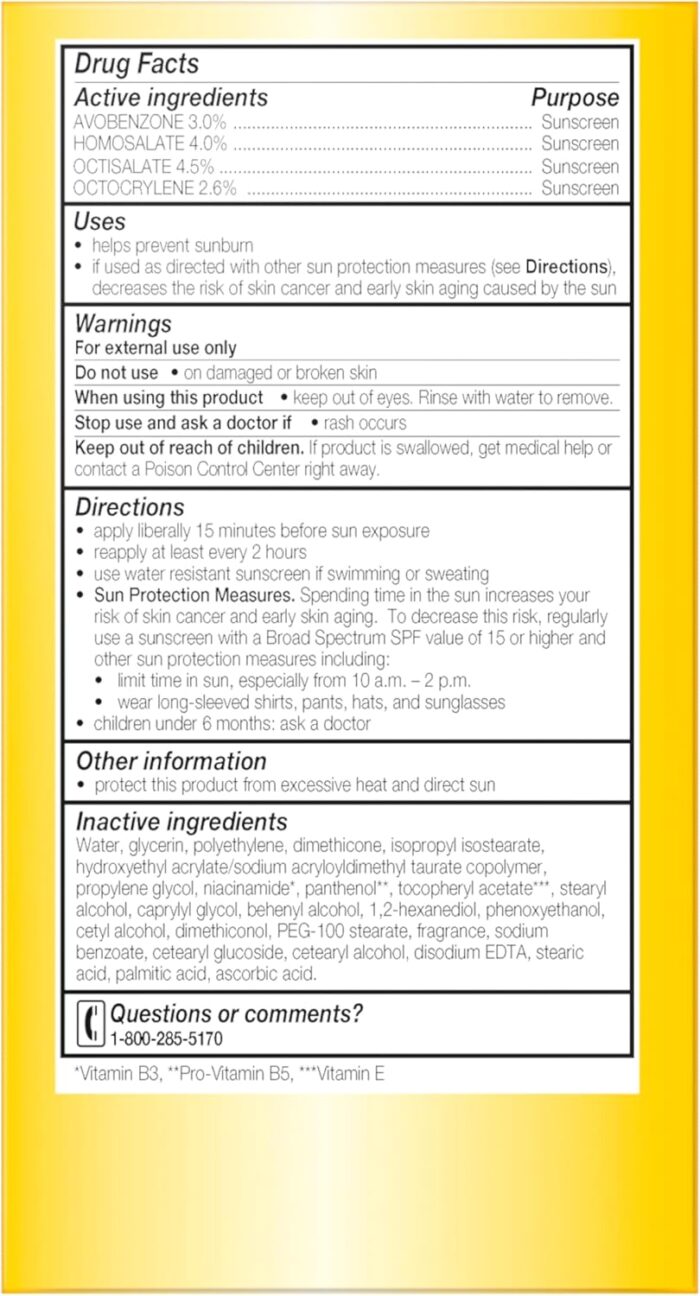 Protect against the number one cause of aging skin—damage from the sun—with Olay Complete All Day SPF 15 Facial Moisturizer. This 2-in-1 moisturizer and sunscreen provides broad spectrum UVA and UVB protection while delivering 48 hours of hydration, making it an essential part of your daily skincare routine. Infused with Niacinamide, Vitamin C, and Vitamin E, this formula nourishes the skin, providing hydration while protecting beautiful, younger-looking skin. Unlike many facial moisturizers with sunscreen, Complete All Day facial moisturizer is non-greasy and oil-free, leaving your skin with a healthy glow. Designed to blend seamlessly into all skin tones, this breathable SPF moisturizer offers effective sunblock protection with a non-greasy finish and no white cast. This fragrance-free sunscreen is non-comedogenic and free of parabens, synthetic dyes, and mineral oil, making it ideal for anyone’s sun care routine.