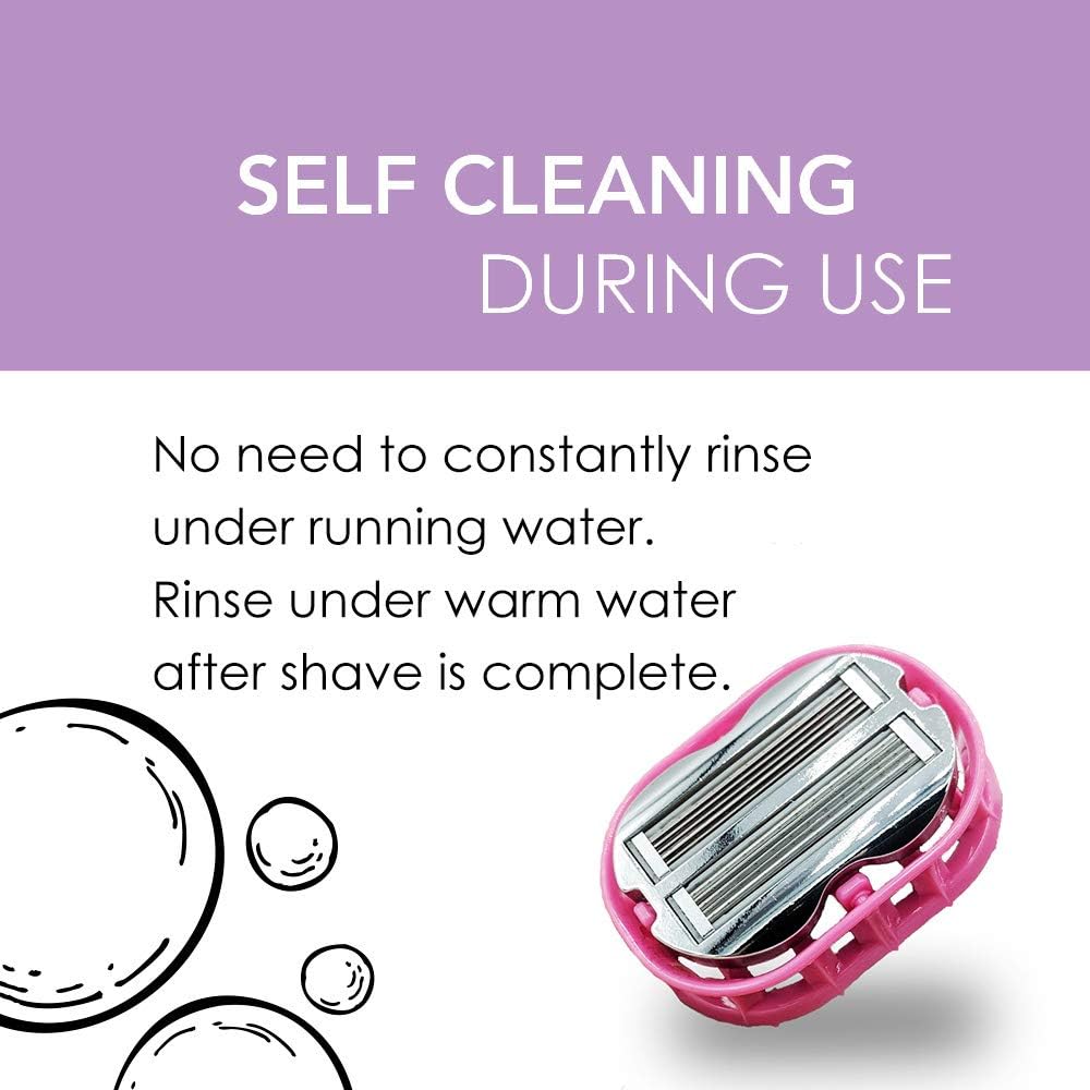 💜 THE ONLY ONE THAT SELF CLEANS DURING USE: Say goodbye to clogged razors during use, you won’t need to rinse your self-cleaning shaver underwater during use to unclog the blades. Premium Omnishaver is not only heavier, but it transfers captured heat to the skin’s surface as the shave takes place. Once it is warmed up from the hot water, it will retain the heat throughout the shave which provides a soothing feel to the skin.