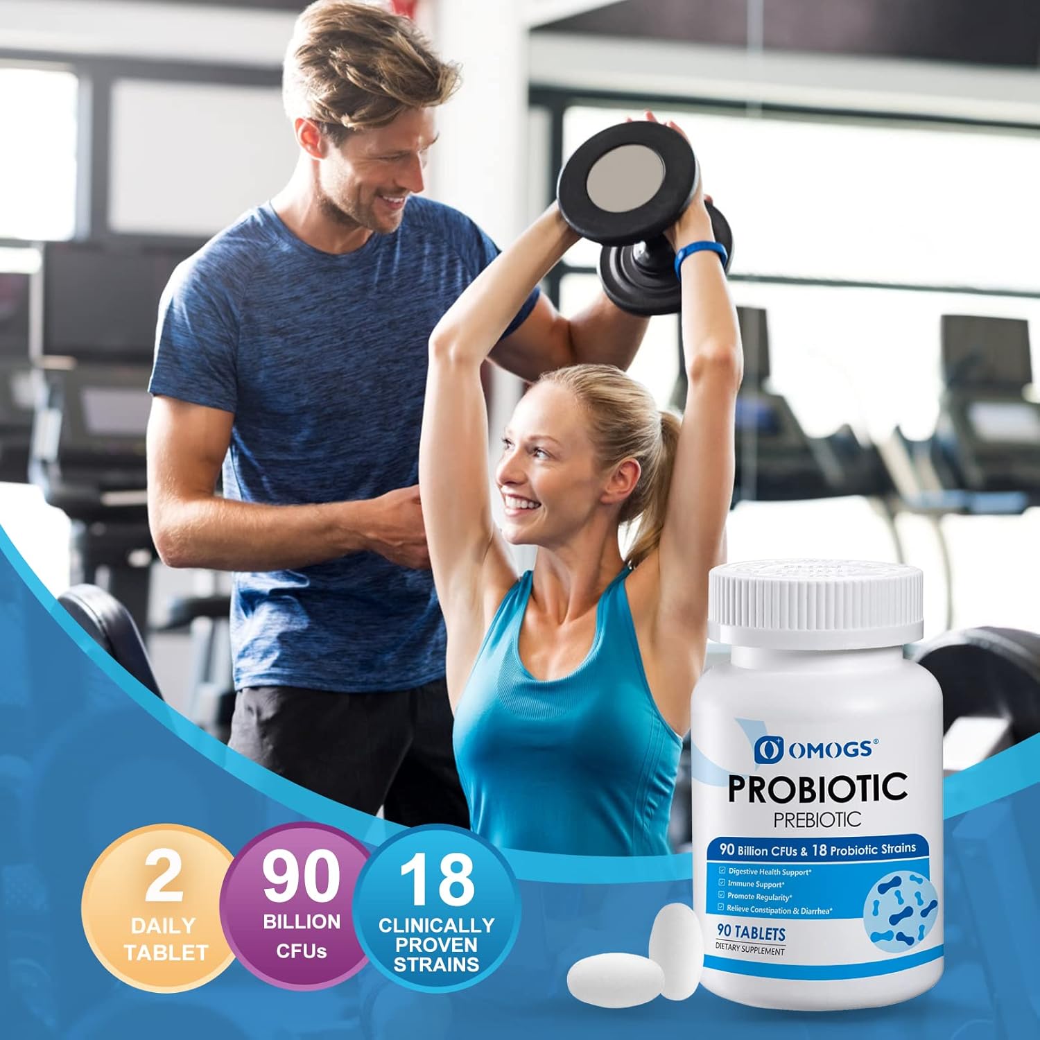OMOGS Probiotics 90 Billion CFUs 18 Strains,with 3 Organic Prebiotic, Probiotics Supplement for Women,Men & Kids,Support Metabolism,Immunity and Digestive Health,Non-GMO & Gluten Free,90 Tablets