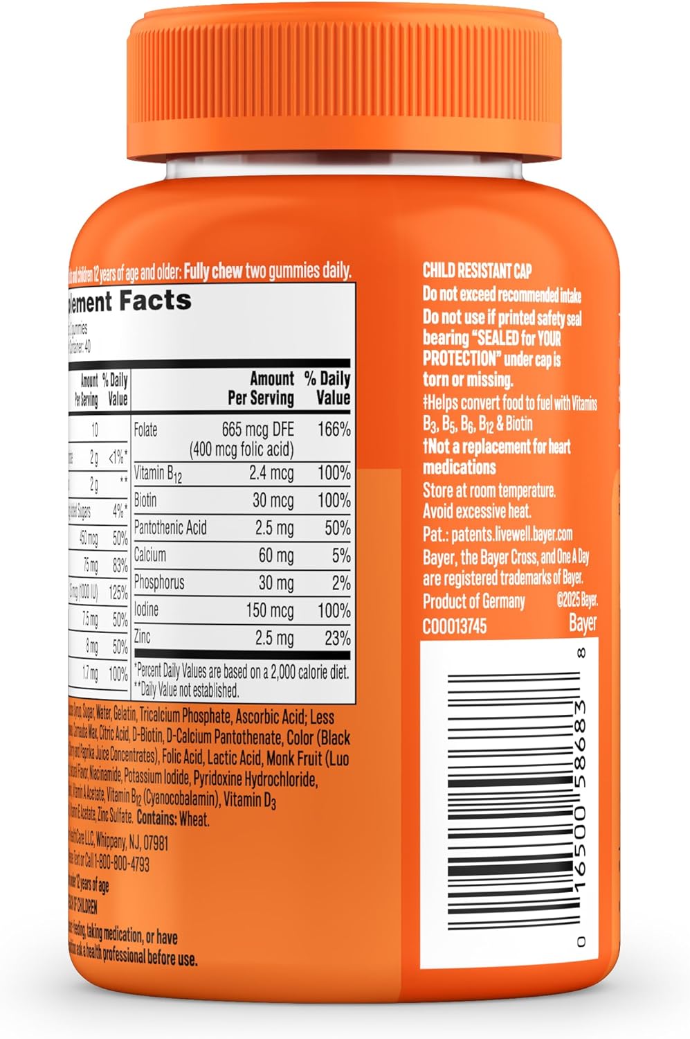 One A Day Men’s VitaCraves gummies offer a wide variety of key nutrients in an easy to chew gummy form. This daily multivitamin is specially formulated for men and contains vitamins a, B12, B6, C, D, E, folic acid, Biotin, Pantothenic acid, iodine, zinc, and selenium. Vitamins and minerals are essential nutrients that play a critical role in overall good health. One a day men’s VitaCraves are formulated to support an active lifestyle, heart health, healthy muscle function, physical energy helping convert food to fuel, and immune health. Adults and children 12 years of age and older: fully chew two gummies daily. One a day multivitamins can provide nutritional support that you and your family’s need at every life stage. Not a replacement for heart medications This statement has not been evaluated by the Food and Drug Administration. This product is not intended to diagnose, treat, cure, or prevent any disease.