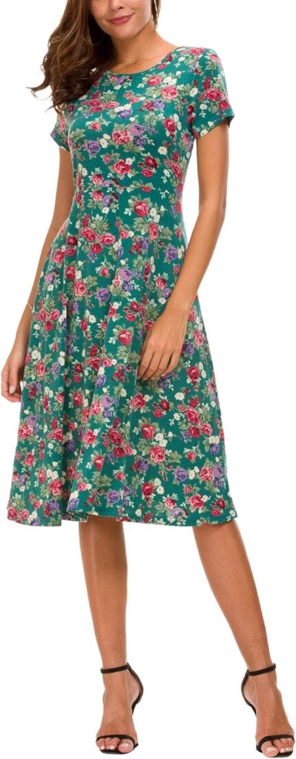 Urban CoCo Women’s Floral Print Short Sleeve Flared Midi Dress