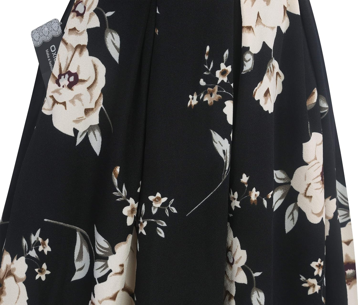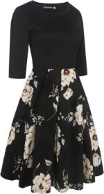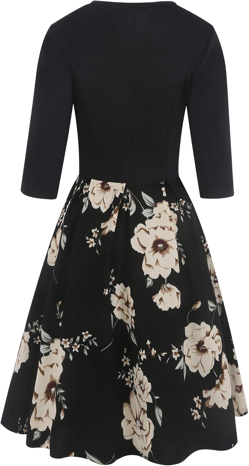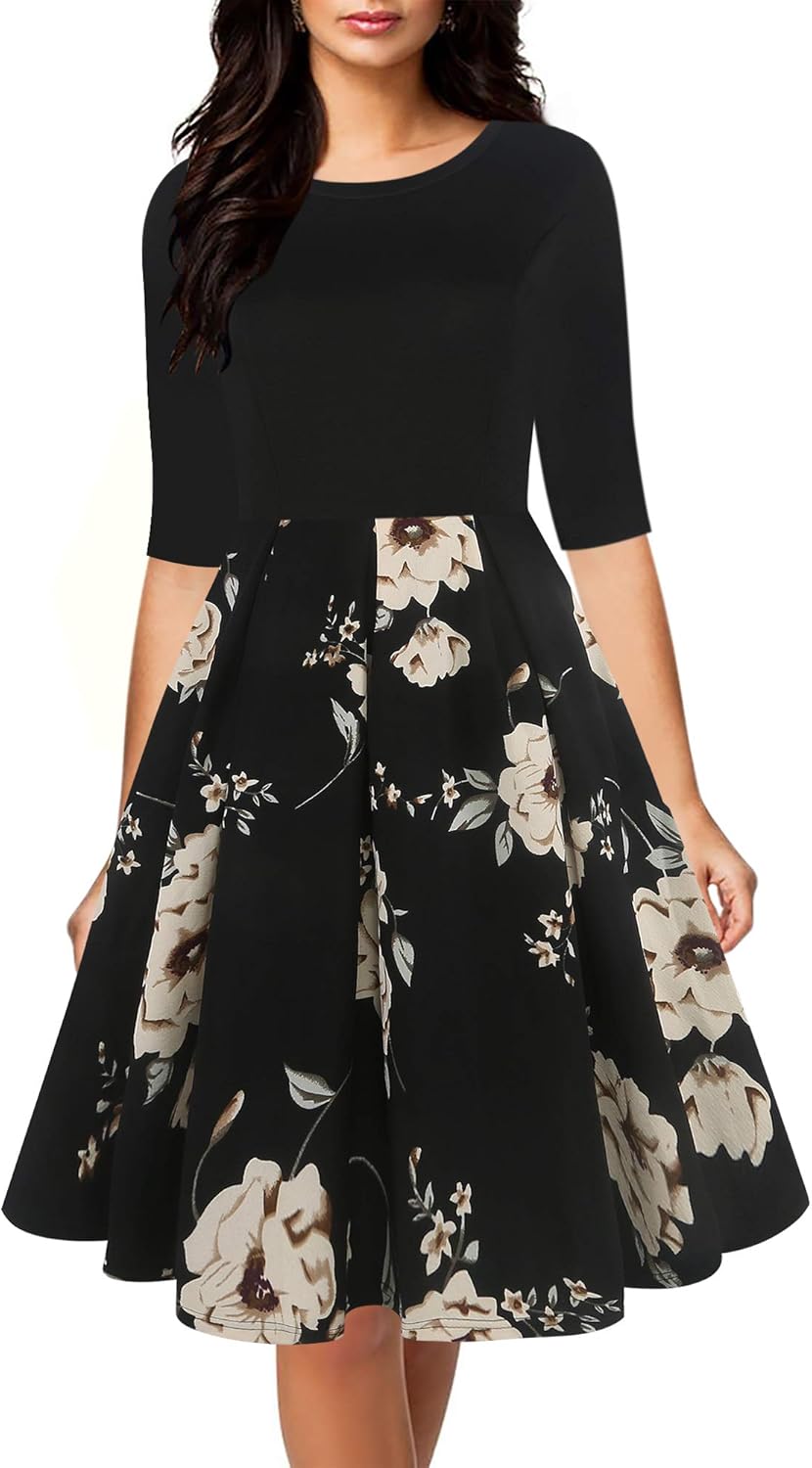 oxiuly Women’s Vintage Half Sleeve O-Neck Contrast Casual Pockets Party Swing Dress