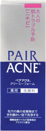 PAIR ACNE Facial Cleanser is a gentle, low-irritation and hypoallergenic facial wash that contains anti-bacterial ingredient to help alleviate acne concerns and keep skin clean and healthy. – Deeply cleanses into pores with fine foam and AMILITE, which effectively removes acne-causing bacteria, sebum, and dirt without the feeling of tightness on skin – Contains moisturizing ingredients including Vitamin C derivative and soybean extract that penetrates deeply into skin and leaves it feeling smooth and moisturized – No. 1 in Japan (Japan’s No.1 Brand in Acne Remedy Market INTAGE SRI+, Acne Remedy Value Sales CY 2020 – 2022) – Made in Japan