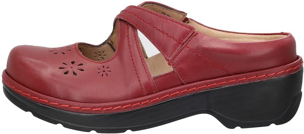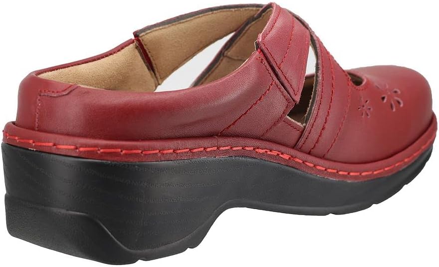 When you want comfort and feminine style, go for the Comfort Leather slip-on clogs. The leather upper features pretty floral cutouts; elastic goring on the crisscrossing straps provides a snug fit. This backless style has a high back rim for foot security. Perfect for days when you are on your feet for extended periods of time.Microfiber footbed offers excellent arch support, superior cushioning and all day comfort.