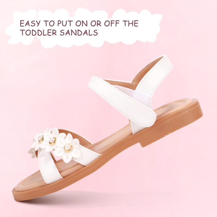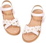 PANDANINJIA Gina Girls Sandals Open Toe Summer Flats Dress Sandals Shoes Toddler/Little Kid/Big Kid