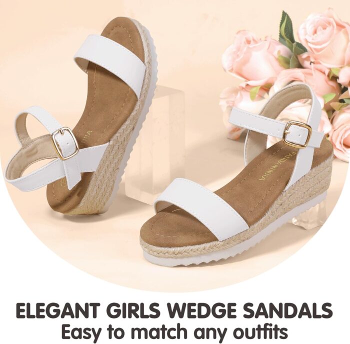 PANDANINJIA Girls Sandals Wedge Platform Espadrille Little Big Kid Girls Heels Open Toe Summer Dress Shoes
