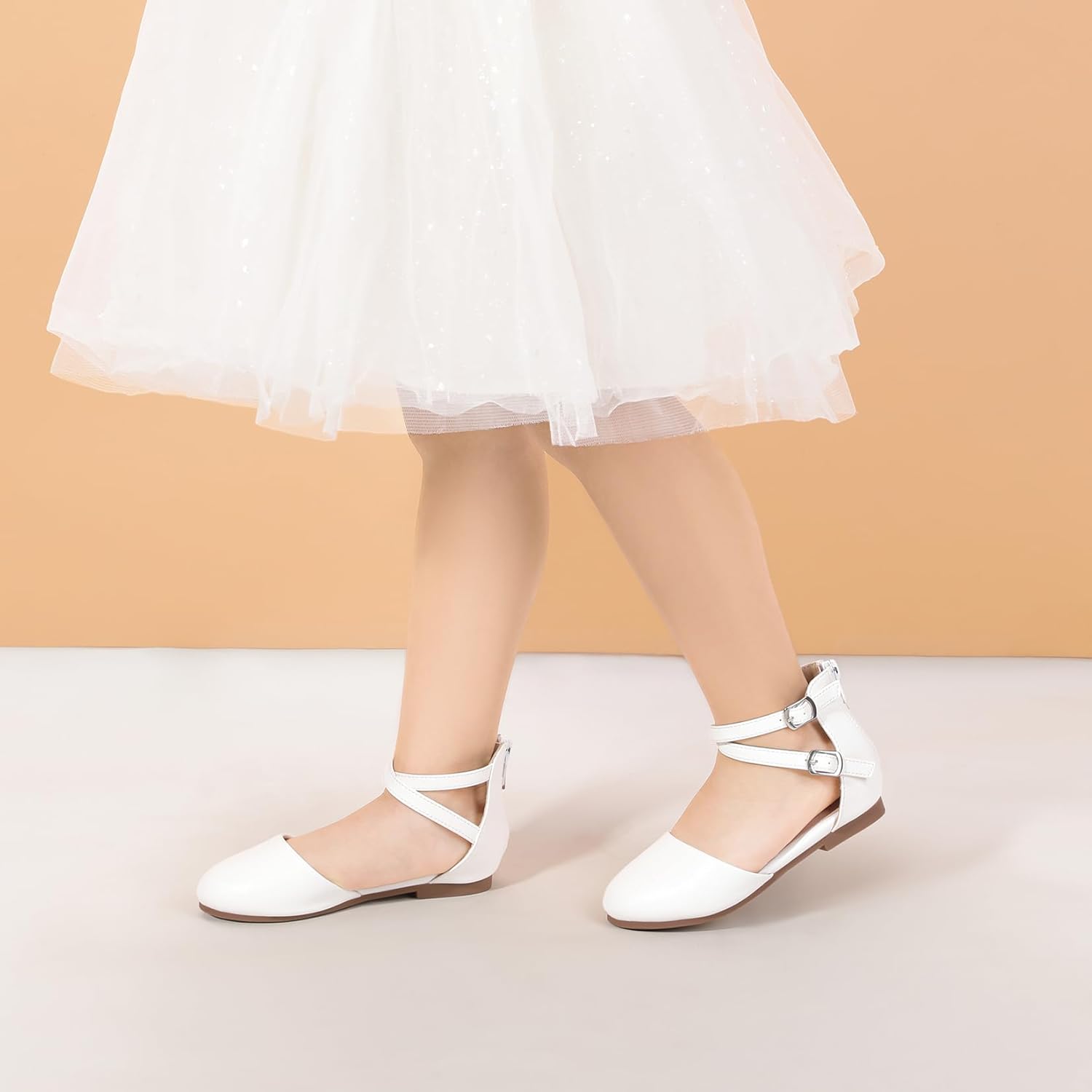 PANDANINJIA Toddler/Little Kid Girl’s Amanda Mary Jane Ballet Flats Ankle Strap Ballerina Dress Shoes Flat Sandals