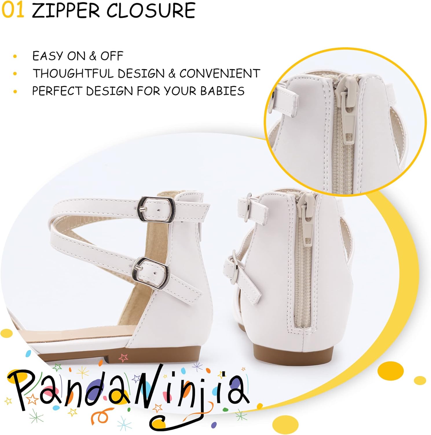 PANDANINJIA Elva Girls Sandals Open Toe Cute Flats Dress Sandals Cross Strappy Summer Shoes Toddler/Little Kid/Big Kid