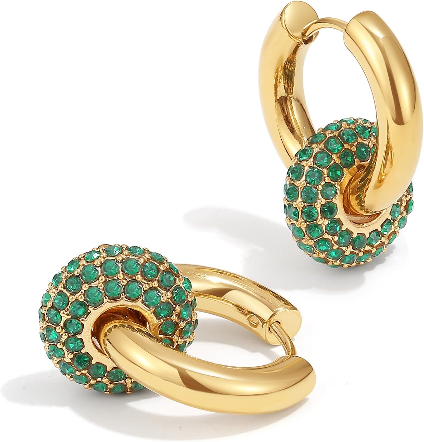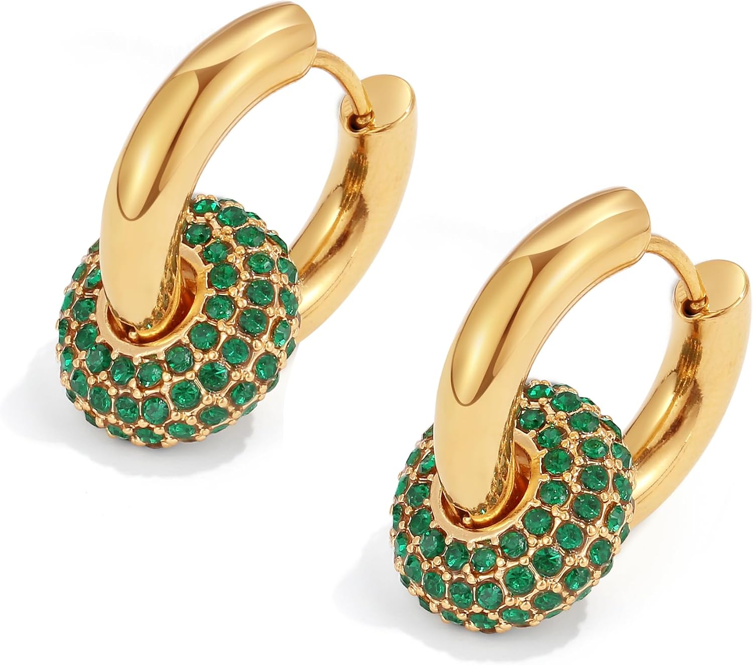 Home Jewelry & Fashion Accessories Earrings PANSTAR 18K Gold Plated Convertible Chunky Hoop Earrings for Women 2 in 1 Design, | Cubic Zirconia Chunky Huggie Earrings | CZ Drop Dangle Earrings