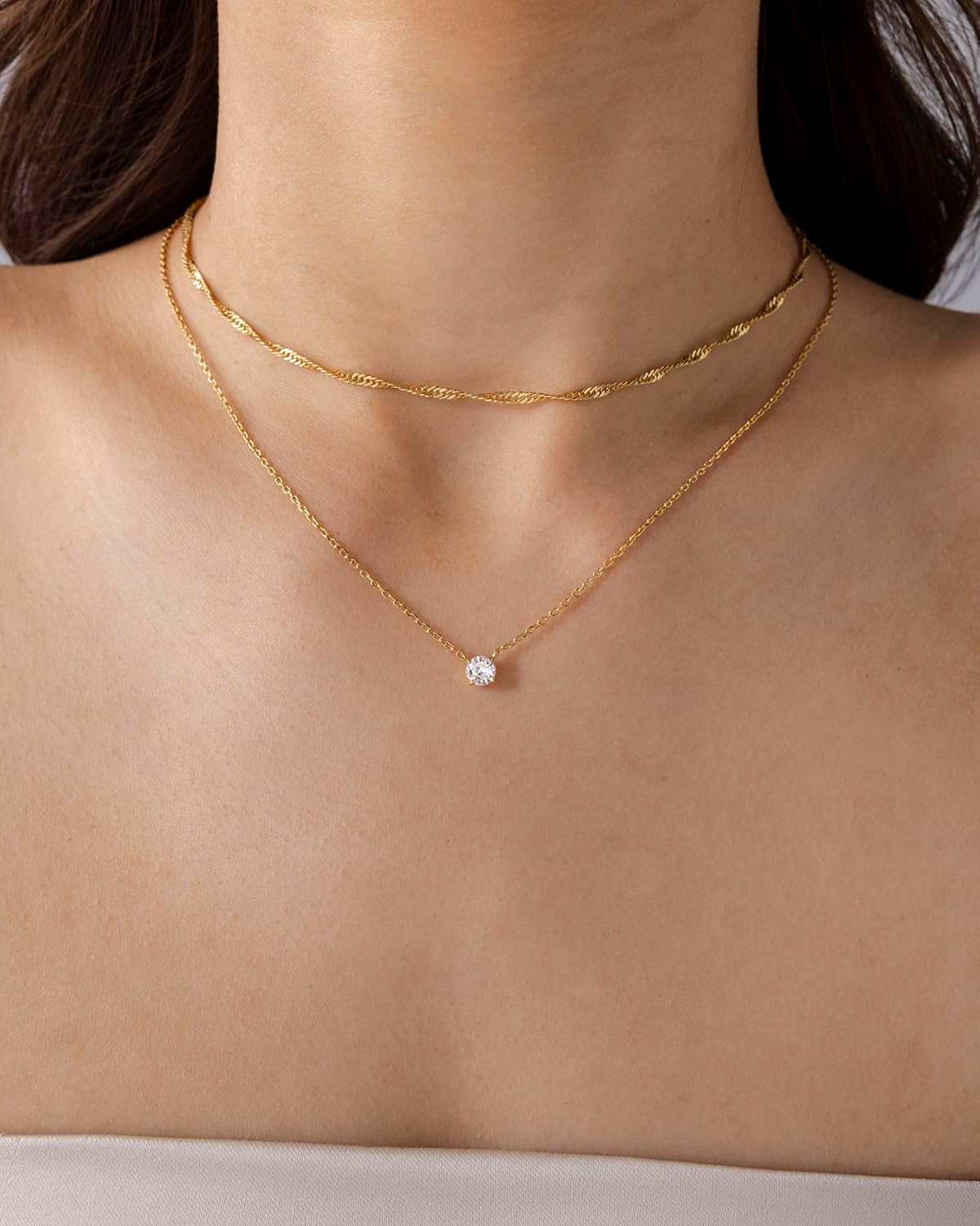 Home Jewelry & Fashion Accessories Necklaces & Pendants PAVOI 14K Gold Plated Twisted Singapore Chain Layering Choker with Round Solitaire and Serpentine Chain Layering Choker with Pear-Cut Stone Pendant Necklace Pack for Women | Cubic Zirconia Statement
