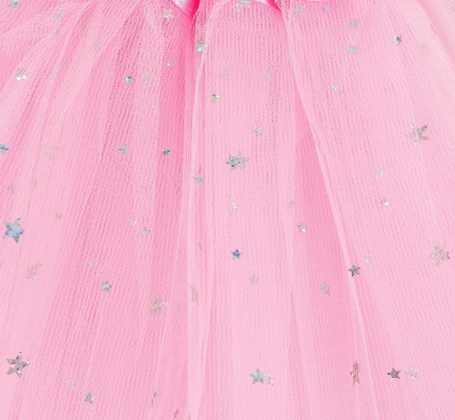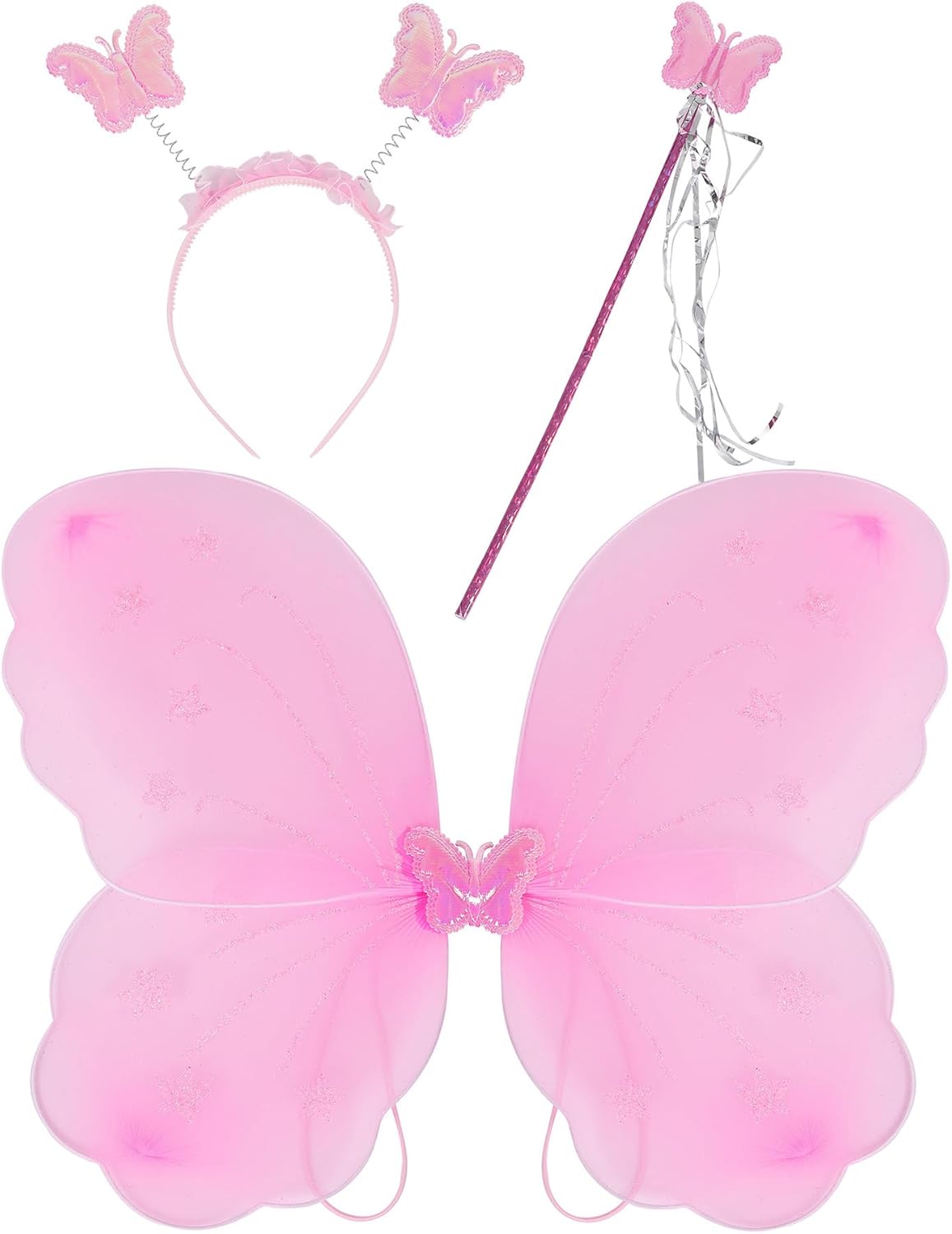 Pink girl Fairy dress, Princess dress, bow, wand and tutu, Butterfly Wings costume set, suitable for birthday party, everyday dress, fun games, suitable for 3-8 year old girls