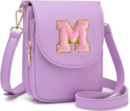 Viverte Crossbody Purse for Teen Girls Small Initial Cell Phone Toddler Purse Leather Triple Compartment Crossbody Bags