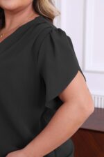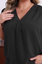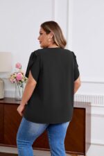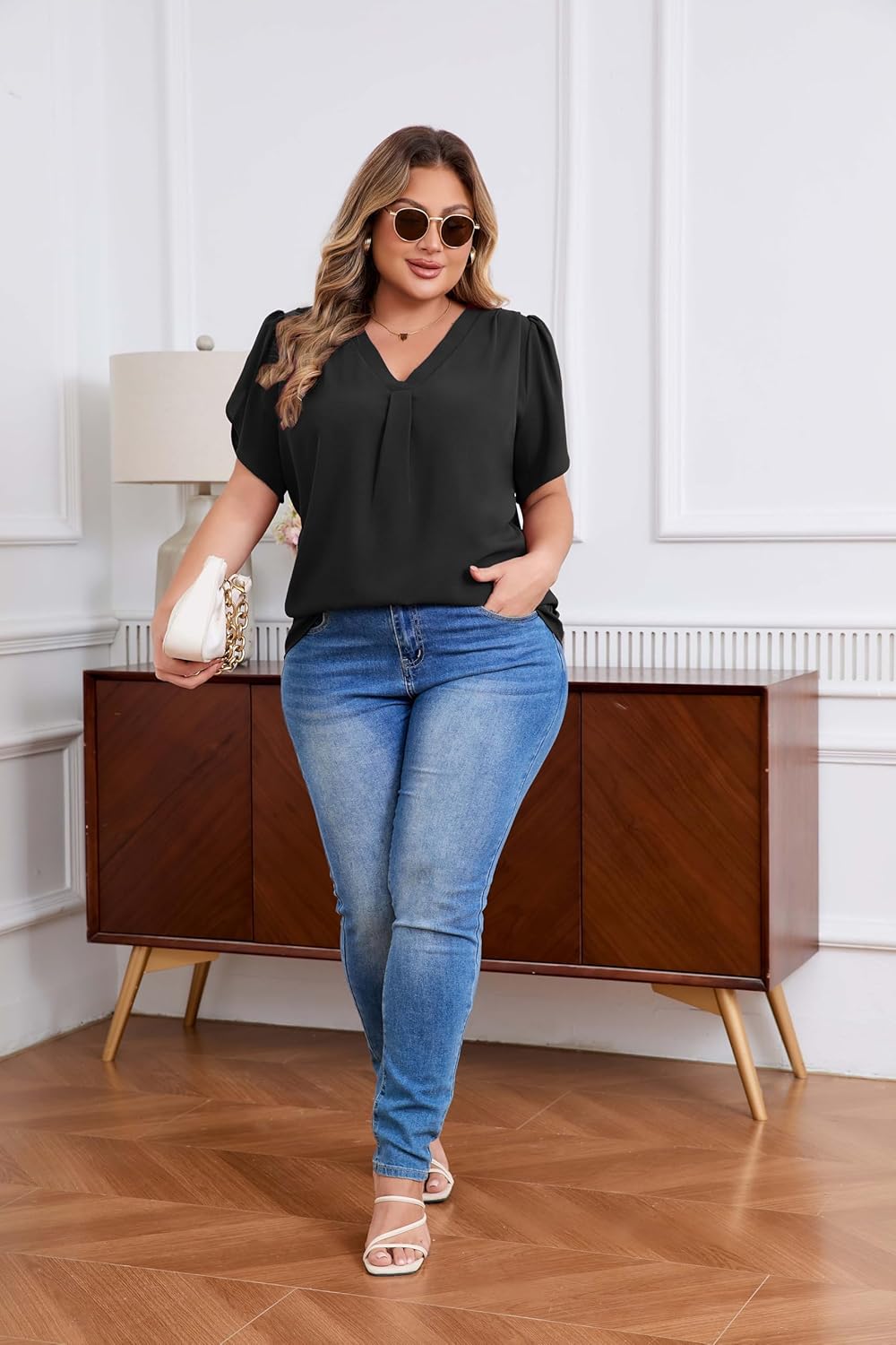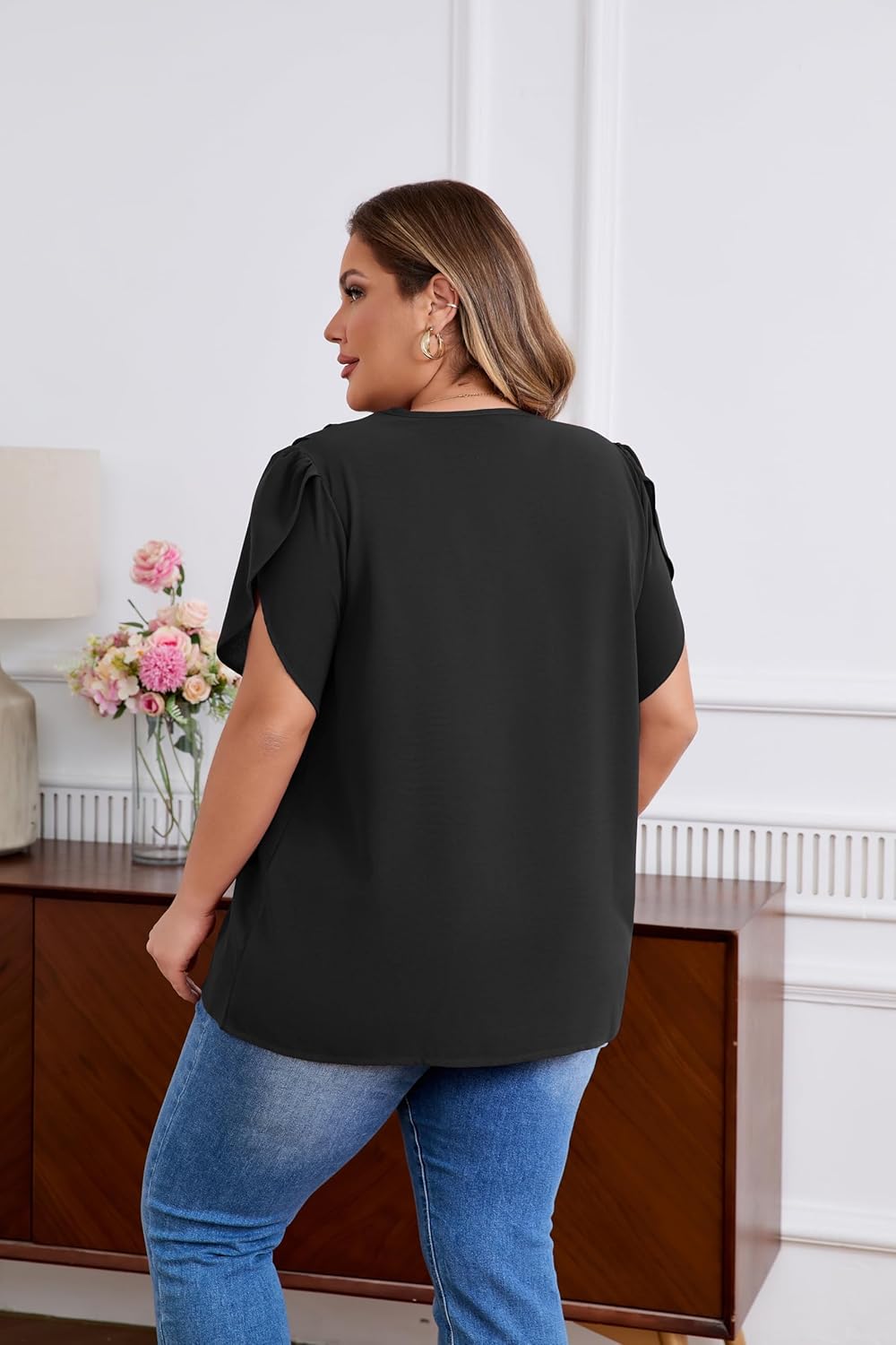 CARROTMOB Women’s Plus Size Dressy Casual Blouses Solid Business Work Tops Petal Short Sleeve V Neck Loose Fit T Shirt Summer Trendy 2025
