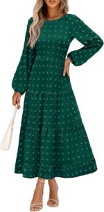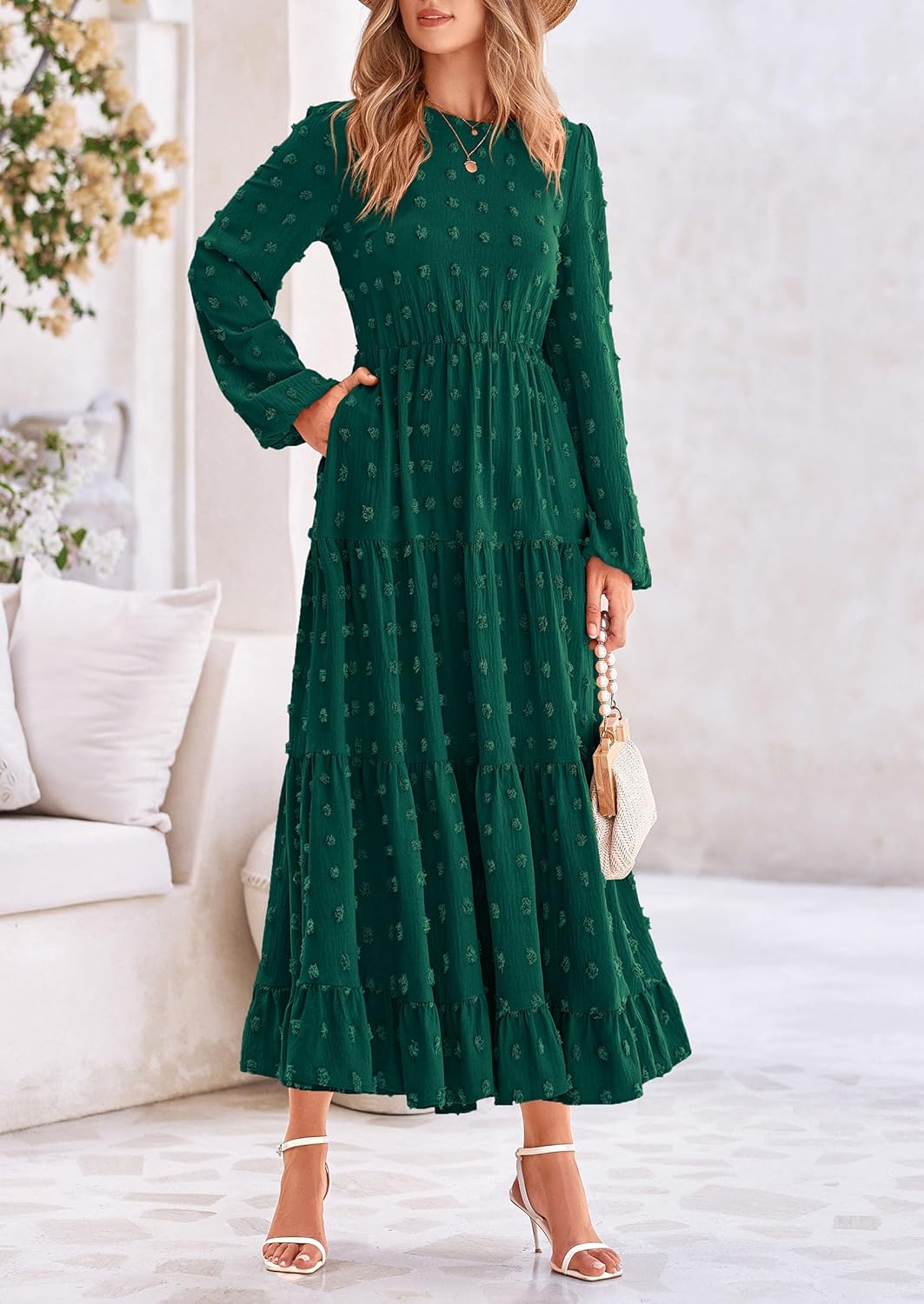 PRETTYGARDEN Long Sleeve Maxi Dress for Women Fashion Swiss Dot Dress