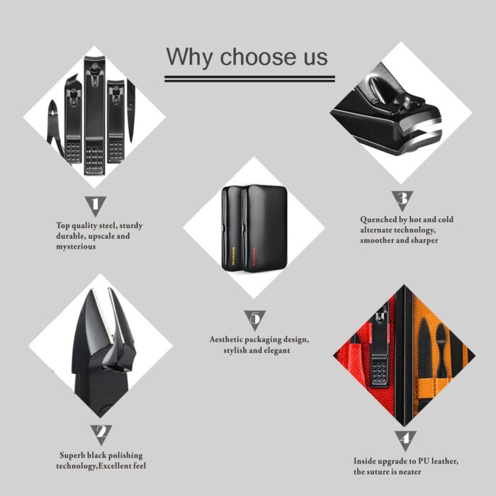 Category: Personal Care Gadgets Tags: 15pcs, BlackYellow, Case, Clipper, Grooming, Kit, Luxurious, Manicure, Nail, Pedicure, Professional, Set, Stainless, Steel, Tools, Travel