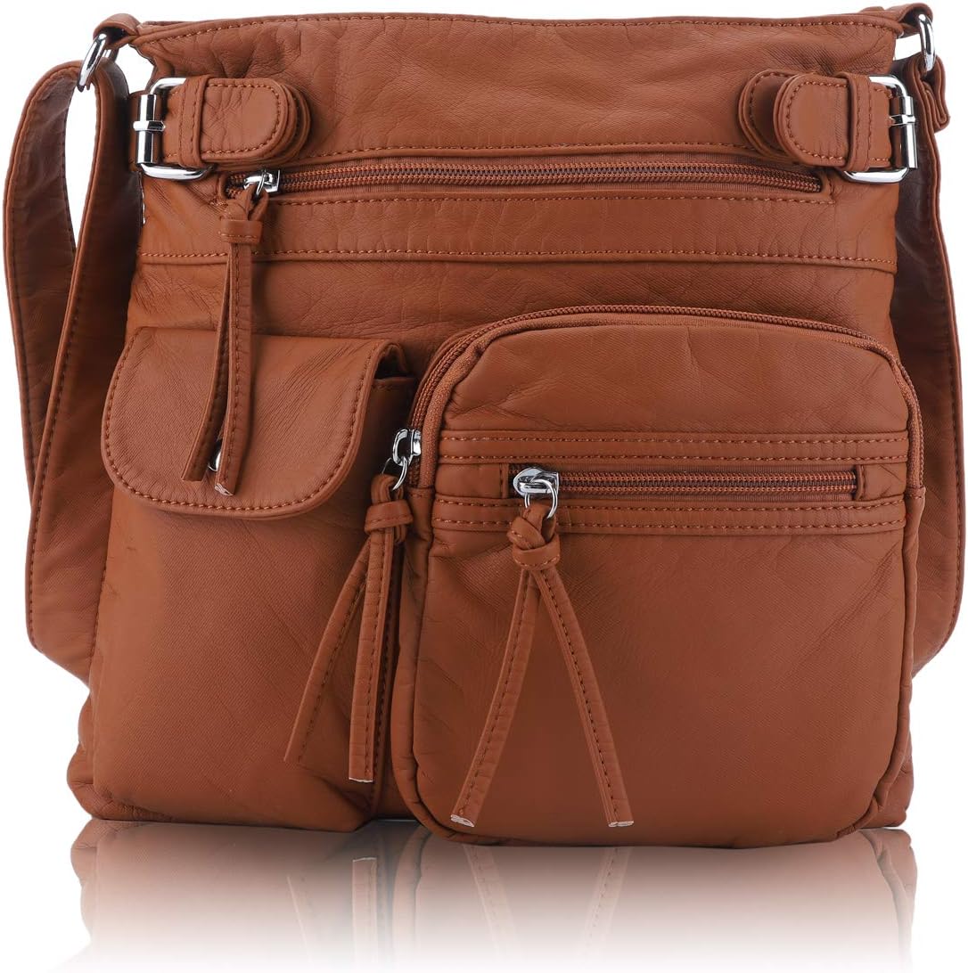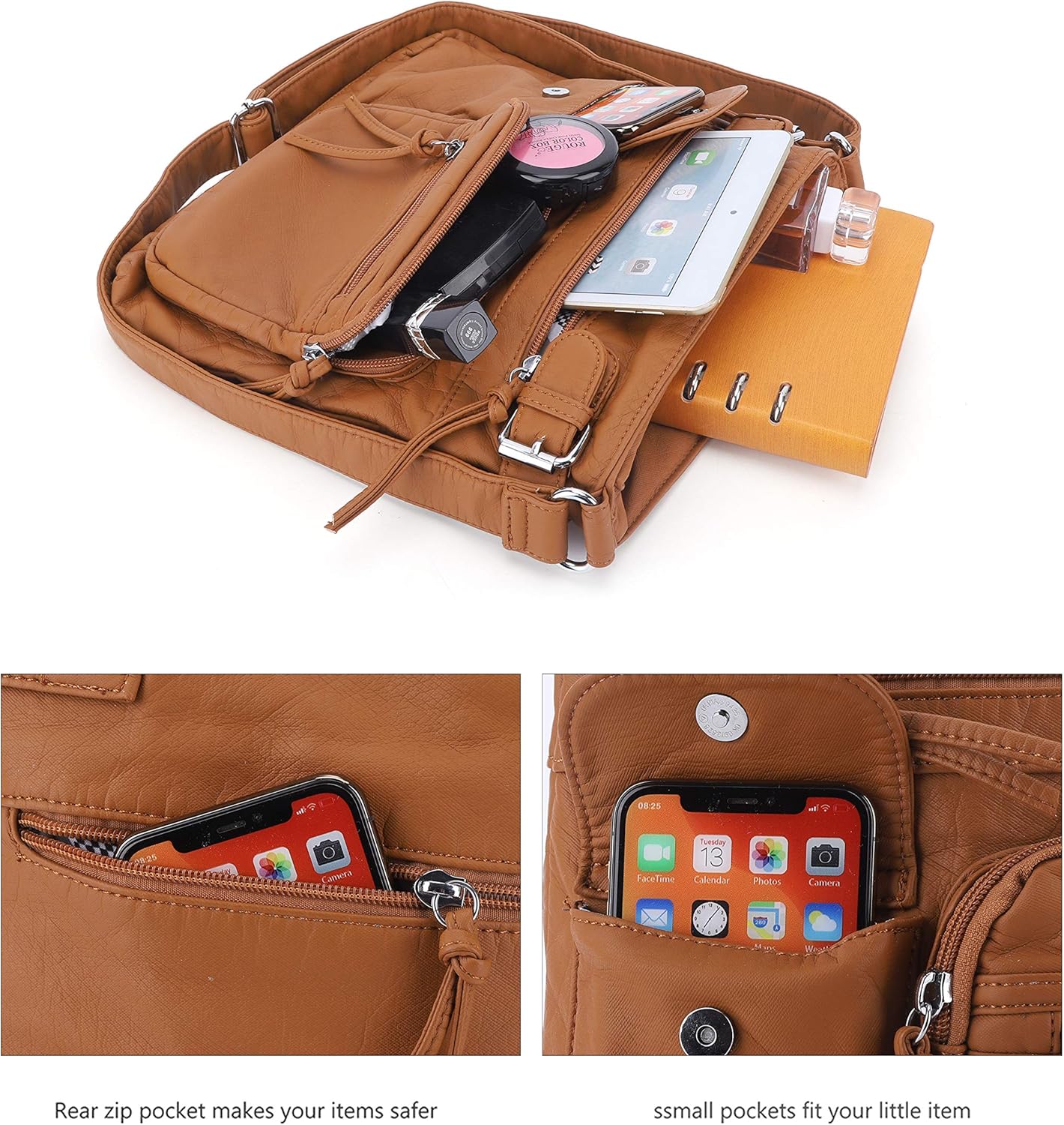 Material:The womens handbag is made of soft, comfortable washed PU leather(Not Real Leather),the waterproof material can keep your belongings dry and the washed leather makes the cross body messenger bag looks concise and elegant.