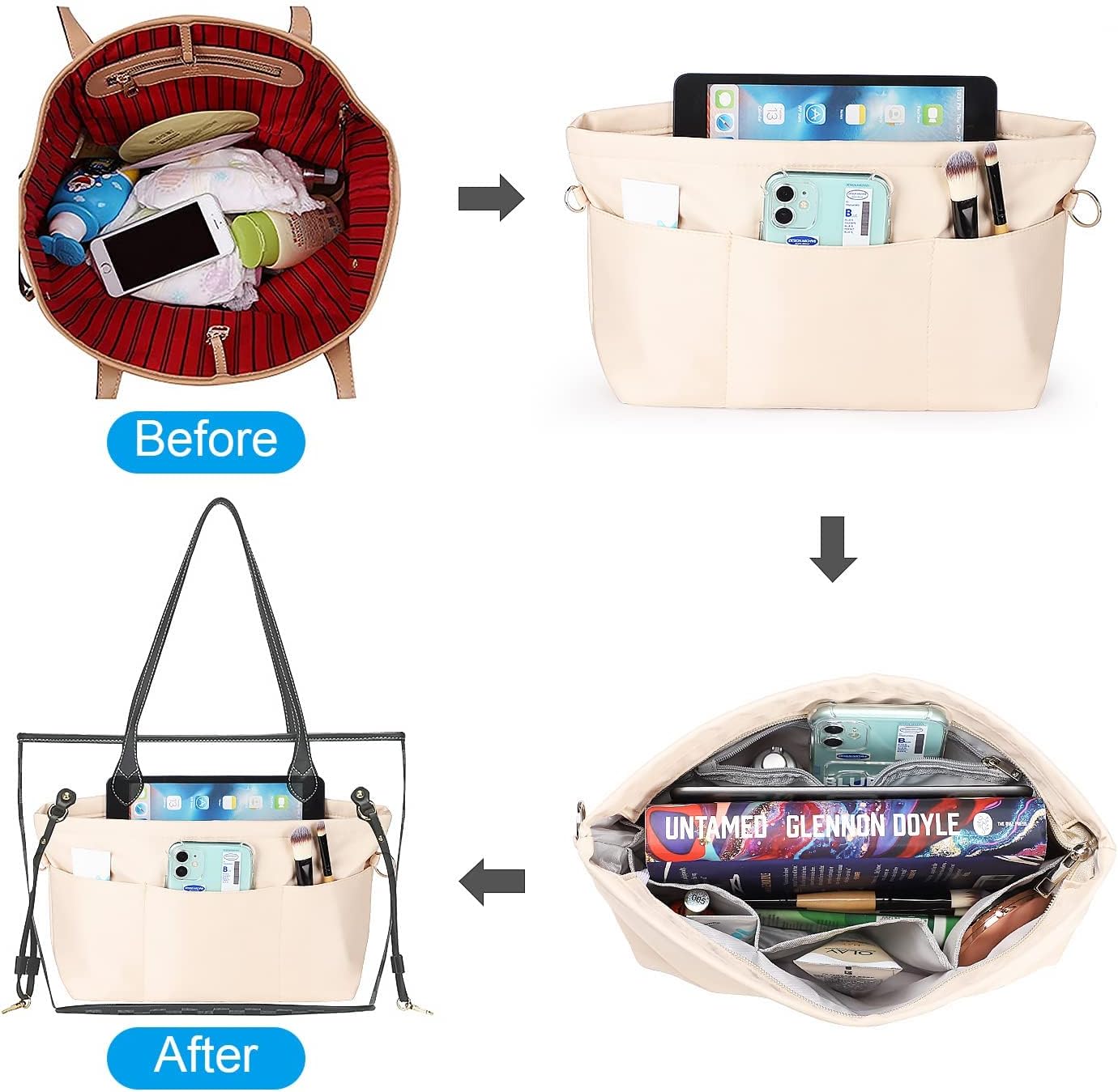 【Simplify Your Life】Easily switch bags in seconds without reorganizing—this insert doubles as a purse, tote, or cosmetic organizer to neatly store keys, wallet, makeup, cards, snacks, and more