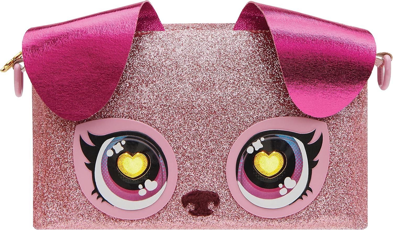 This shimmering Purse Pets wrist bag comes alive with its expressive eyes that light up in the colours of the rainbow. By pressing on the nose, the eye colour can even be selected to match the outfit