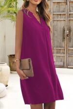 Women Summer Mini Dress Breathable, Soft, Skin Friendly and Comfortable Tunic Dress, Ruffle Sleeves, Split V Neck , Shift Dress, Solid Color, Casual Loose Style Hide Your Perfect Show Your Body Shape