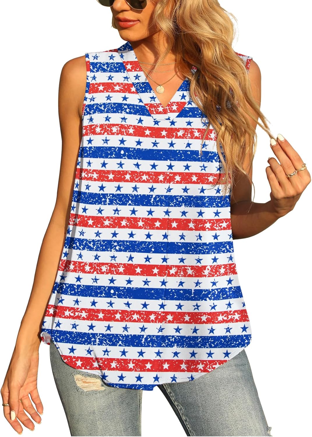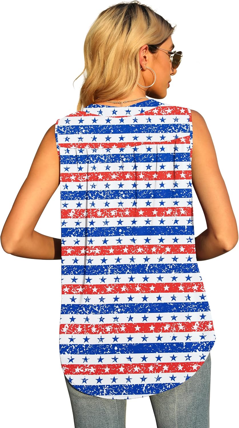 Womens Summer Sleeveless Chiffon Tank Tops Blouse Loose Casual V Neck Blouses Shirt