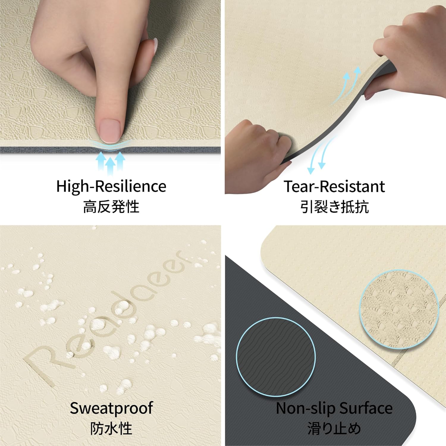 Double-Sided Anti-Slip Surface: Features a double-sided anti-slip design, with a polygonal texture on the touches the skin side for a comfortable grip and a wave texture on the touches the floor side for stability and slip-resistance.