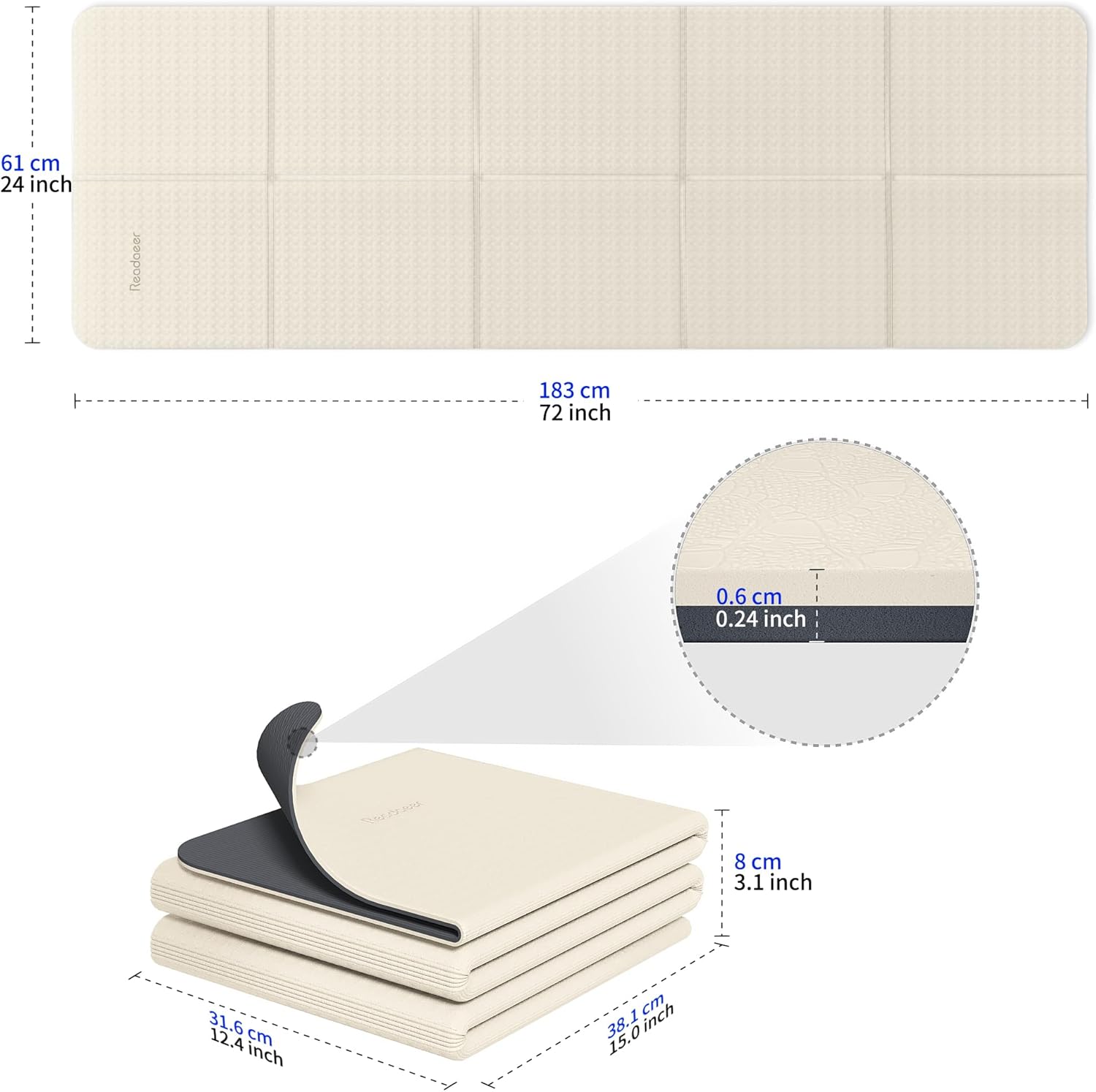 ‘Readaeer Foldable Yoga Mat for Travel Folding Yoga Mat 6mm Thick with Carrying Bag, Non-Slip TPE Exercise Pilates Mat for 72” L x 24” W x 0.24 Inch’