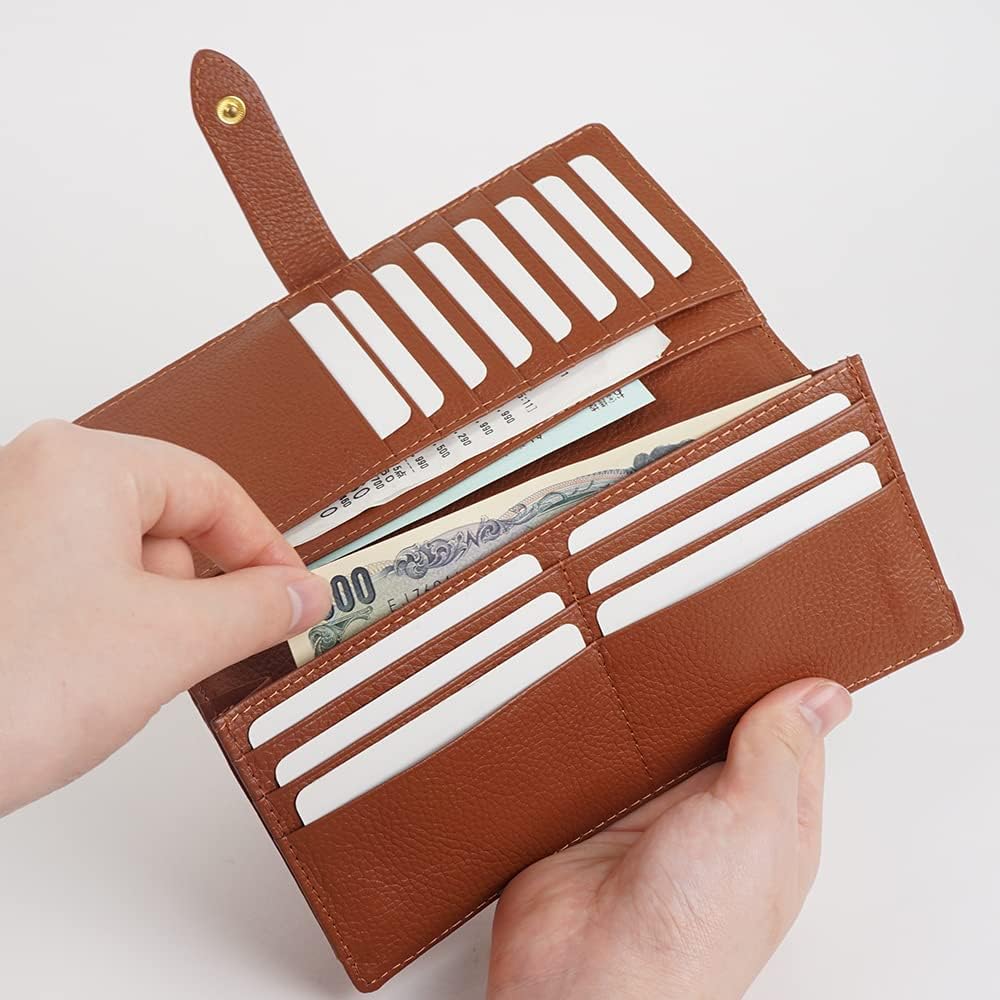 Reconni Women’s Long Wallet, Snap Button, Slim, Thin, Genuine Leather, Cowhide Leather, Women’s, Leather Wallet, Long Wallet