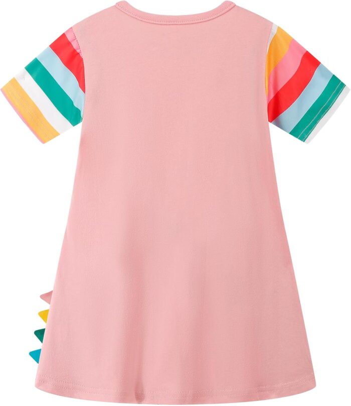 RETSUGO Little Girls A-Line Dress Cute Unicorn Rainbow Pattern Short Sleeve Casual Toddler Girl Dresses for Party 1-8 Years