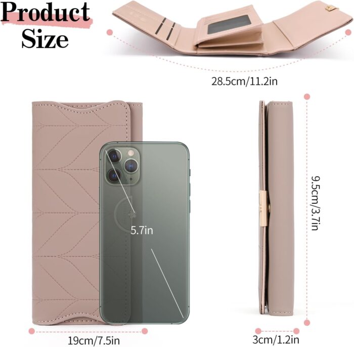 Premium Leather Material: Crafted from premium leather, long ladies’ purse exudes elegance and durability. 3×9.5x19cm/1.18×3.74×7.48 inch.Can fit it phone,cash,checkbook,coin and credit,etc.