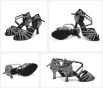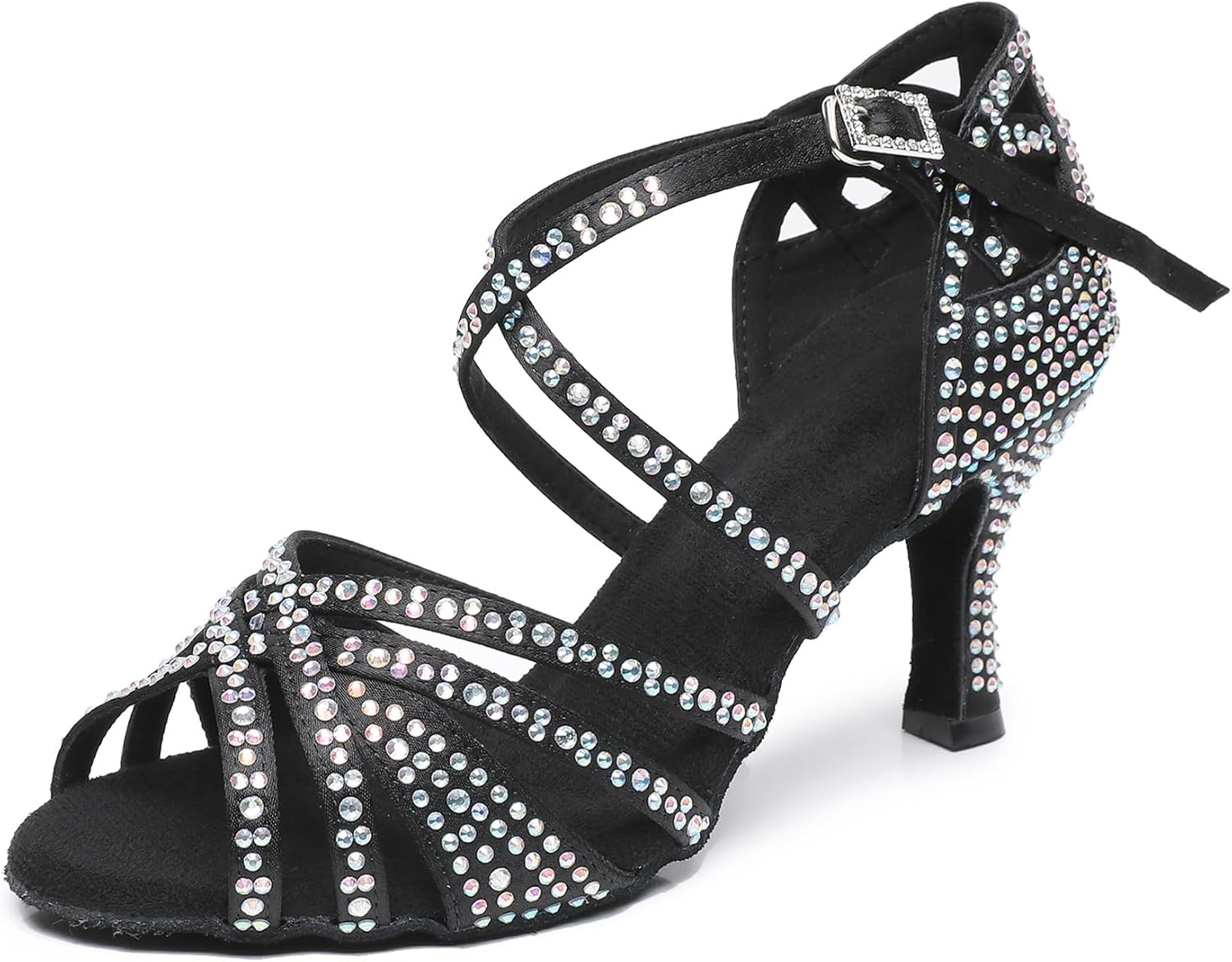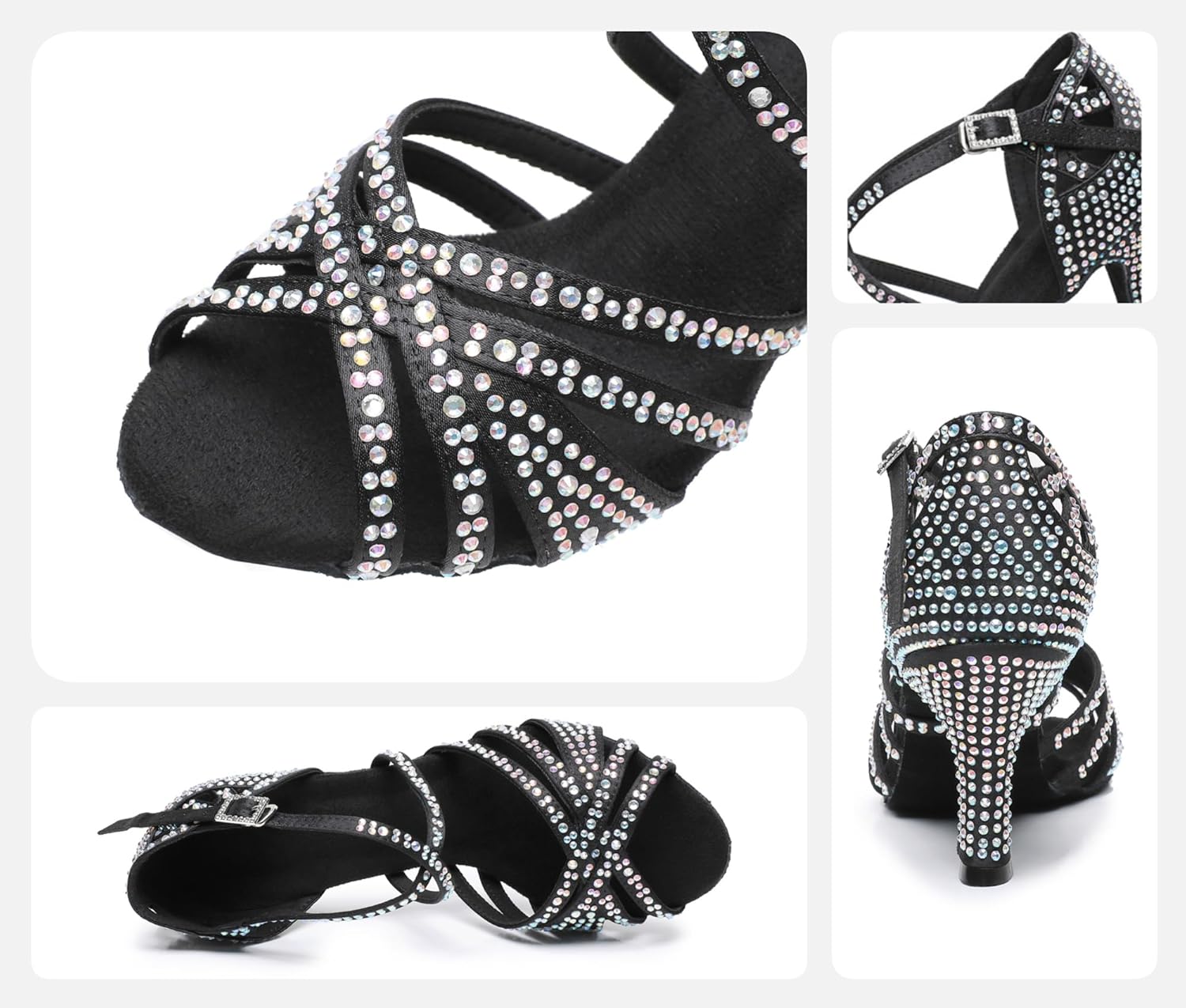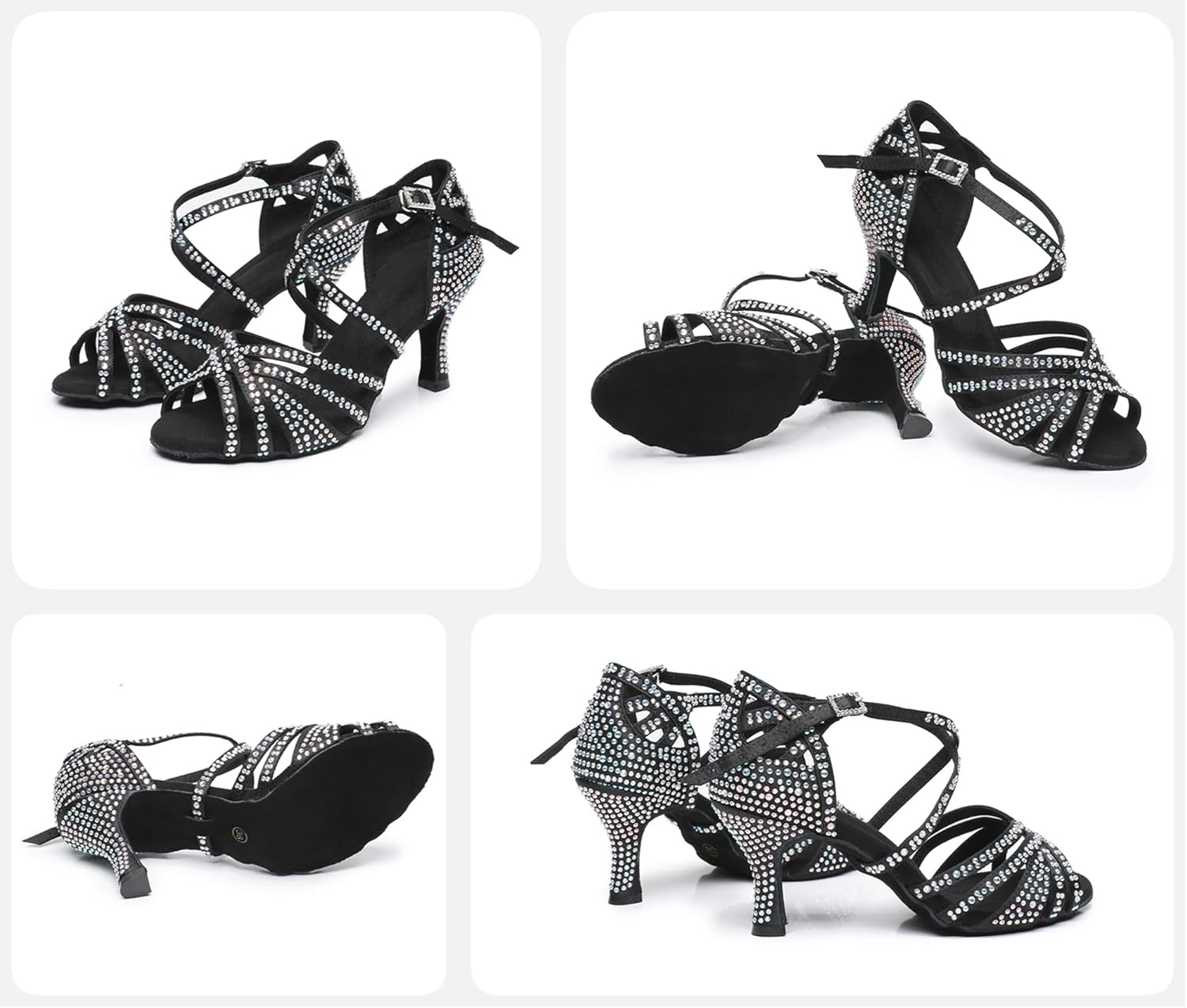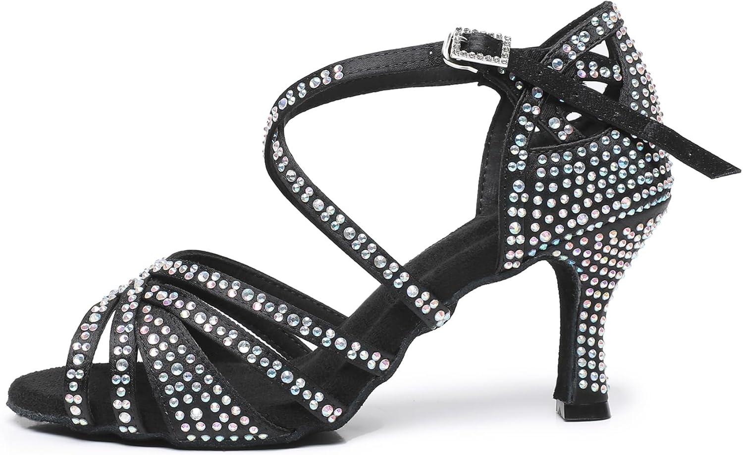 Rosefinch Women’s Latin Dance Rhinestone Shoes Soft Bottom Modern Pole Dance Ballroom Dance Wedding Shoes High Heel Adjustable Latin Shoes for Girls Ladies