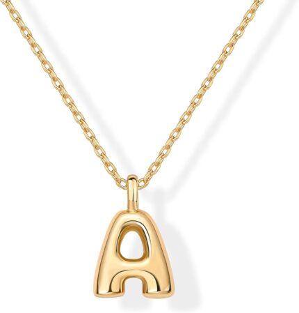 PAVOI 14K Gold Plated Dainty Chunky Bubble Initial Letter Pendant Necklace for Women | Alphabet Letter Necklace