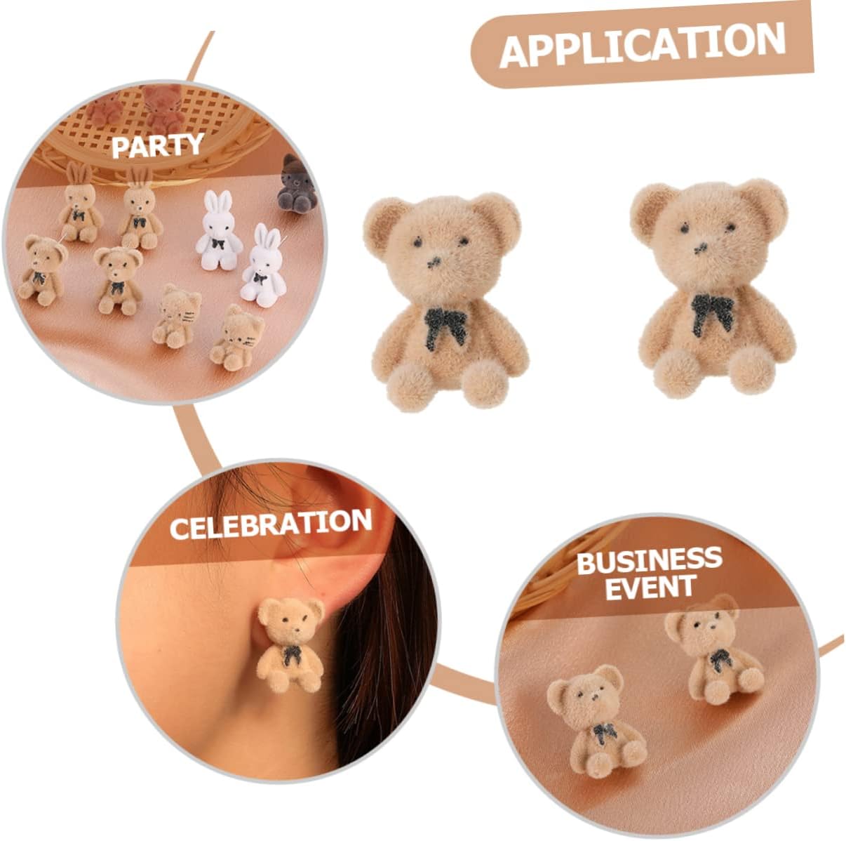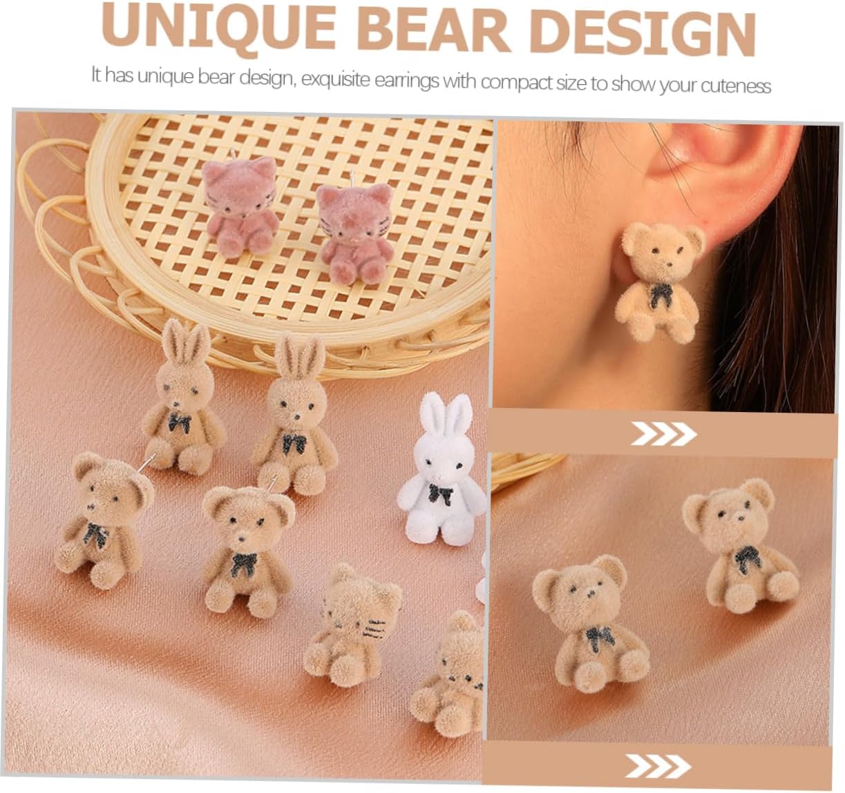 SAFIGLE 5pairs Cute Flocking Bear Earrings for Women Girls Adorable Jewelry Lightweight Hypoallergenic for Everyday Wear Special Occasions Fall Accessory