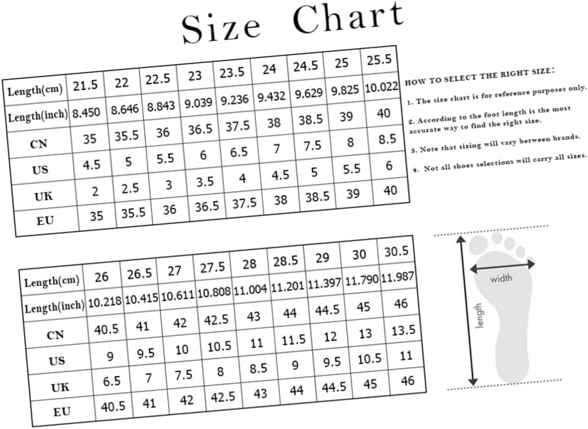– Size 40: Approx. 25cm(length); 8US; 5.5UK; 39EU; 9.825 Inch Women Shoes.