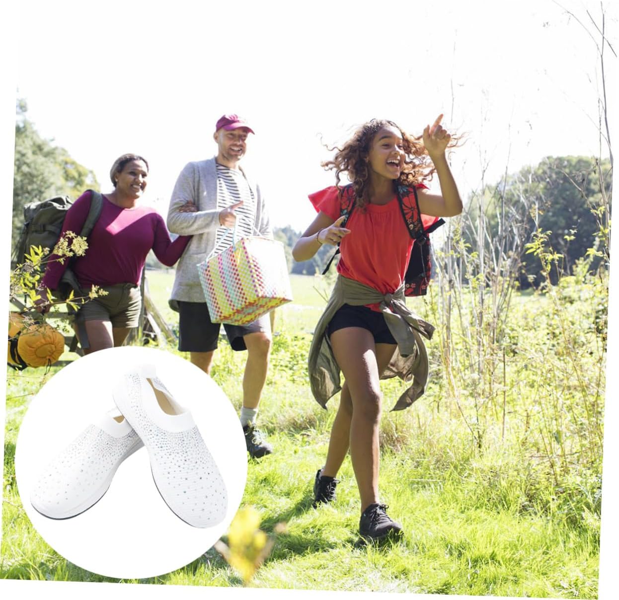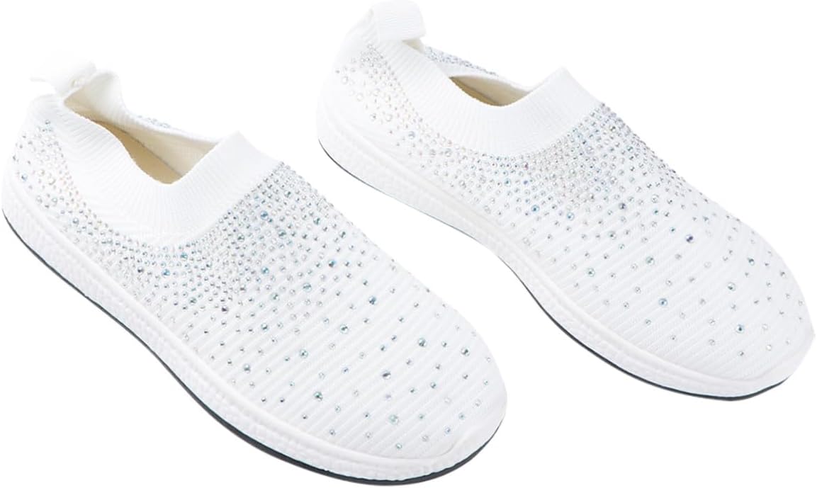 SAFIGLE Breathable Women Shoes Summer Rhinestone Flat Sneakers Flexible Sole Walking Shoes for Female Fit Breathable Mesh Athletic Footwear White