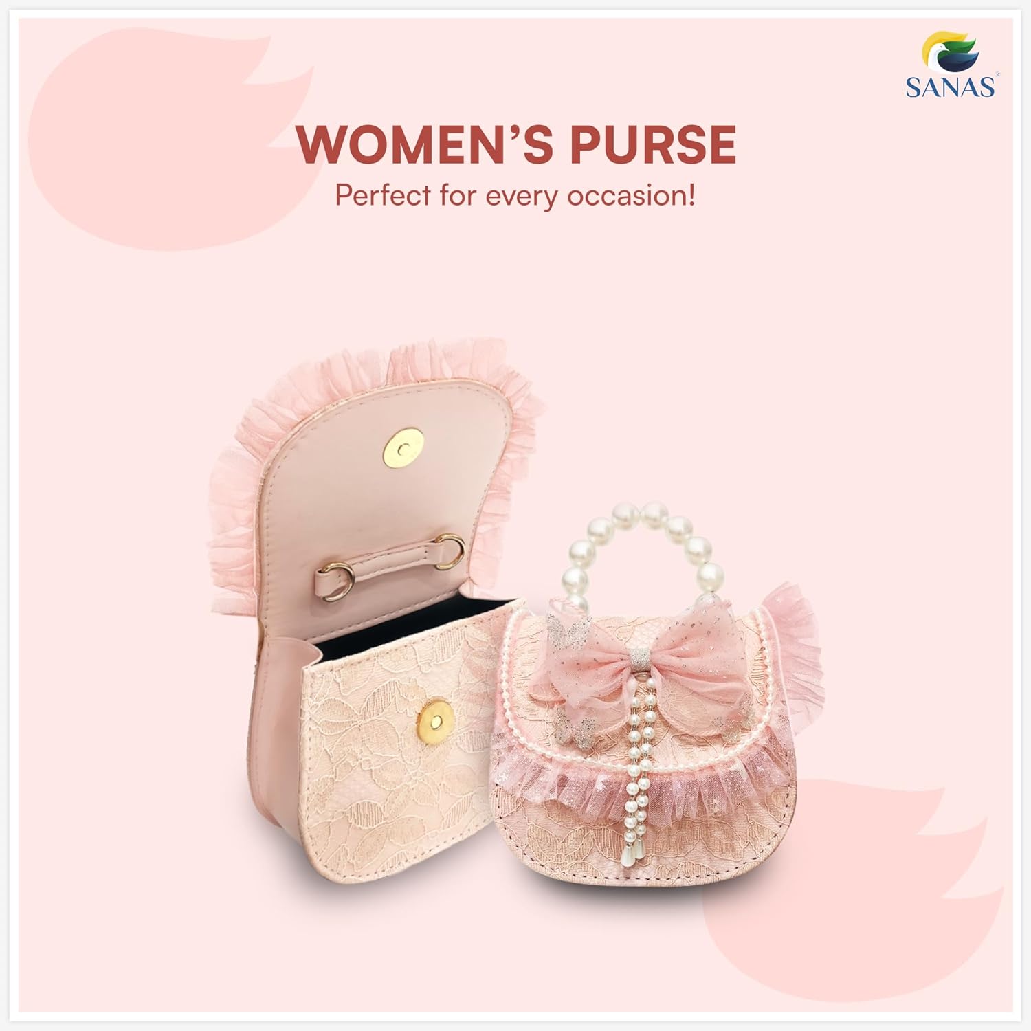 Be the first to review “Sanas Mini Netted Clutch with Pearls 1Pc Stylish Pink Handbag Designer Pink Purse for Girls Evening Fashionable Party Bag Pearl Embellished Clutch 1Pc, Baby Pink, Western” Cancel reply
