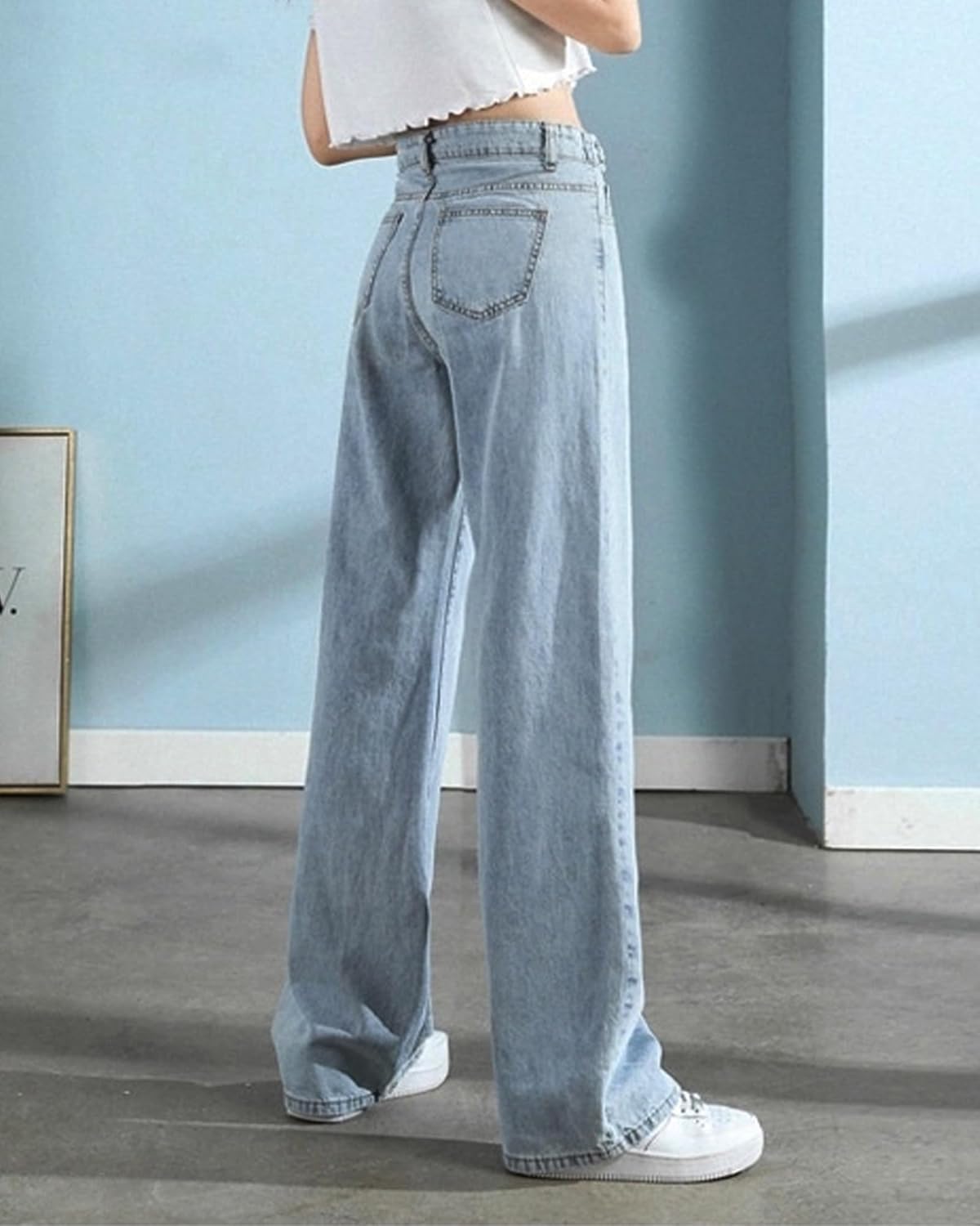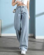 Price: (as of – Details) KDF 2024 New Fashion High Waisted Straight Leg Jeans for Women Design:1.Crop Raw Hem; 2.