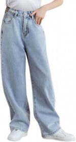Home Clothing & Fashion Jeans & Pants SANGTREE Girls Women’s Casual Wide Leg Jeans, 4-14 Years